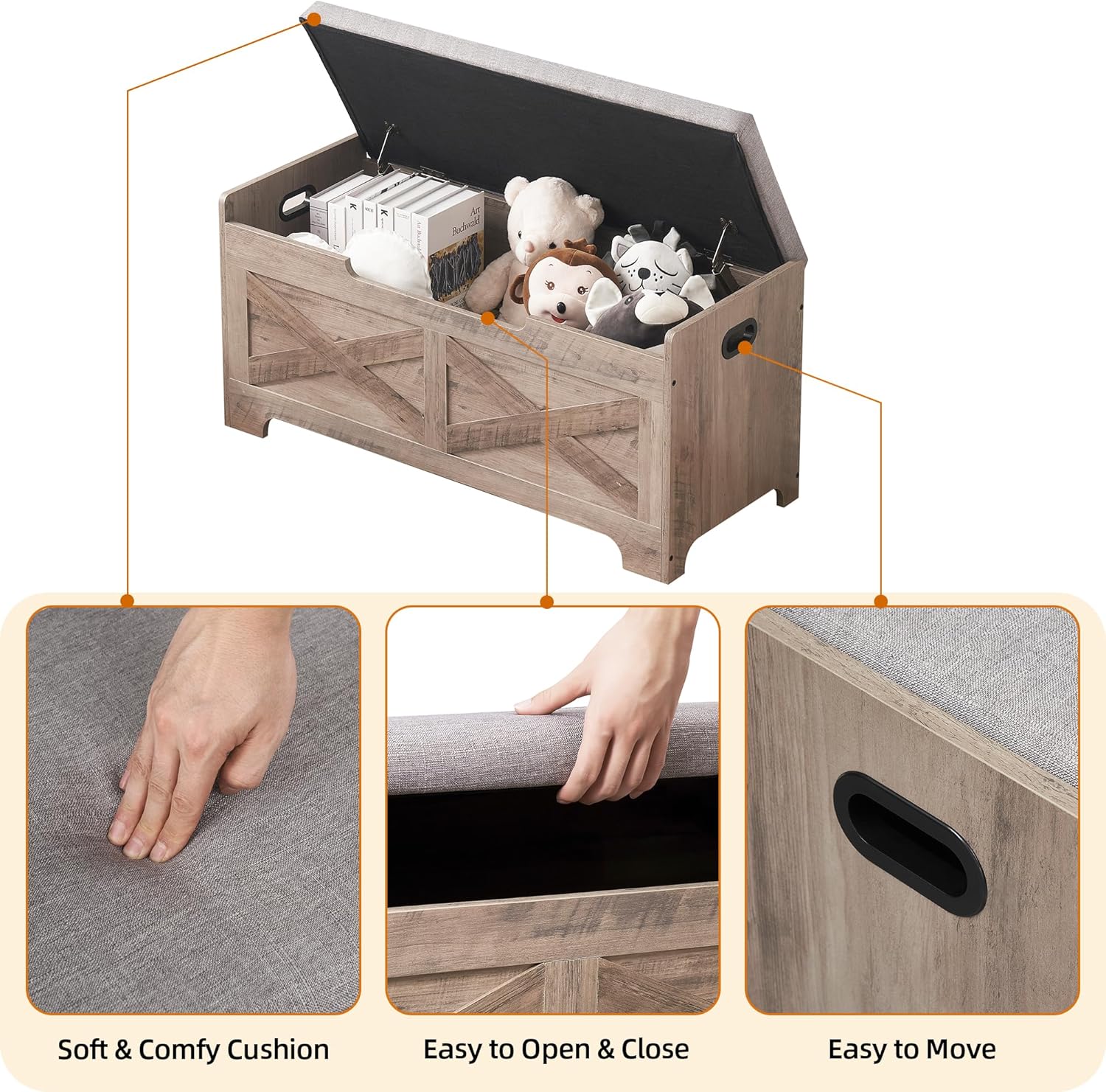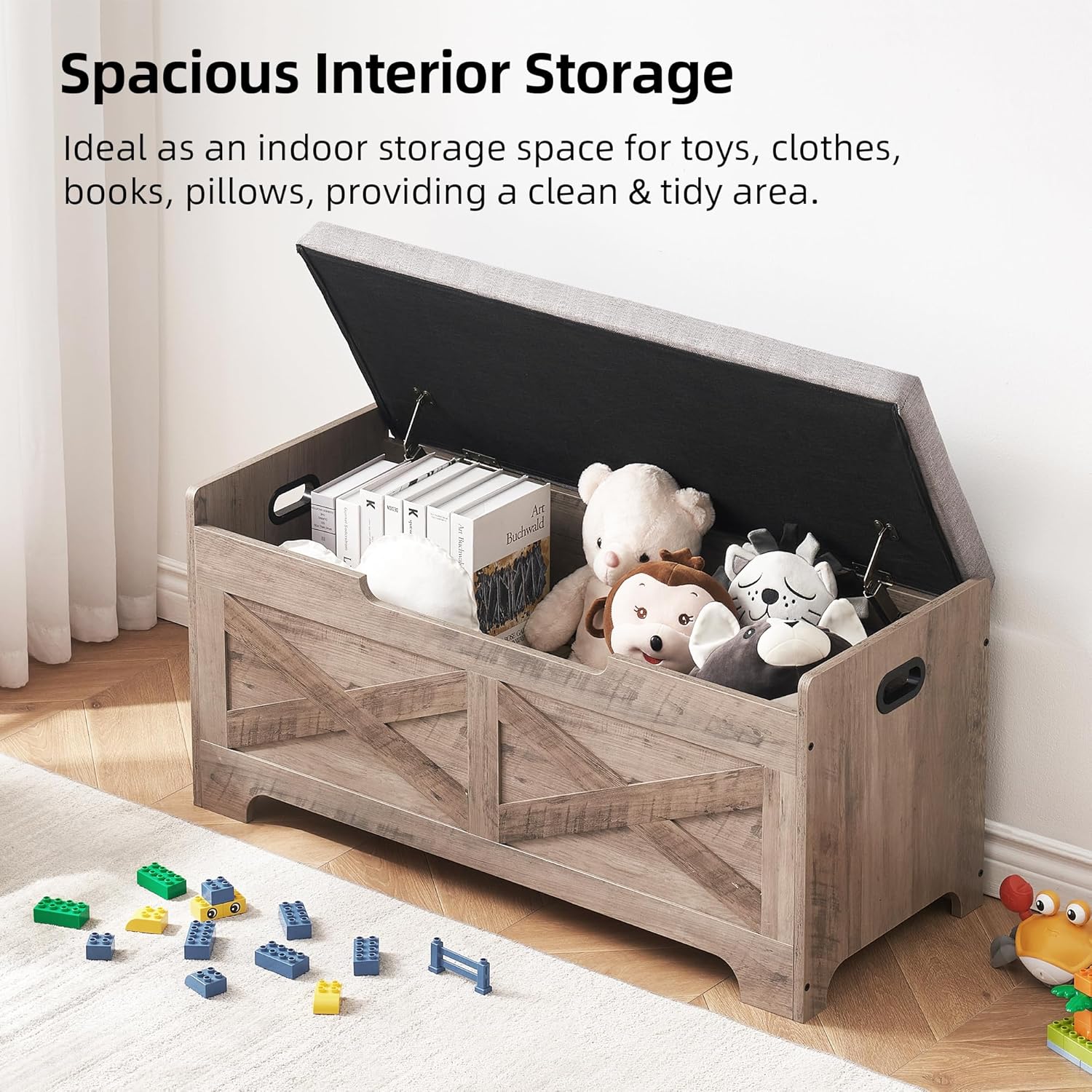 Storage Chest, Wooden Storage Trunk with 2 Safety Hinges, Sturdy Entryway Storage Bench, Shoe Bench, 39.4" Lift-Top Storage Bench for Entryway, Bedroom, Living Room, 39.4 inches, Gray