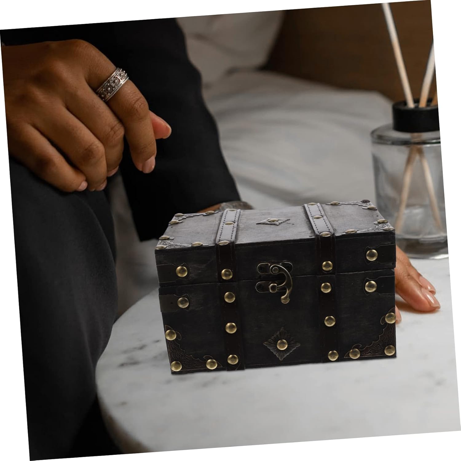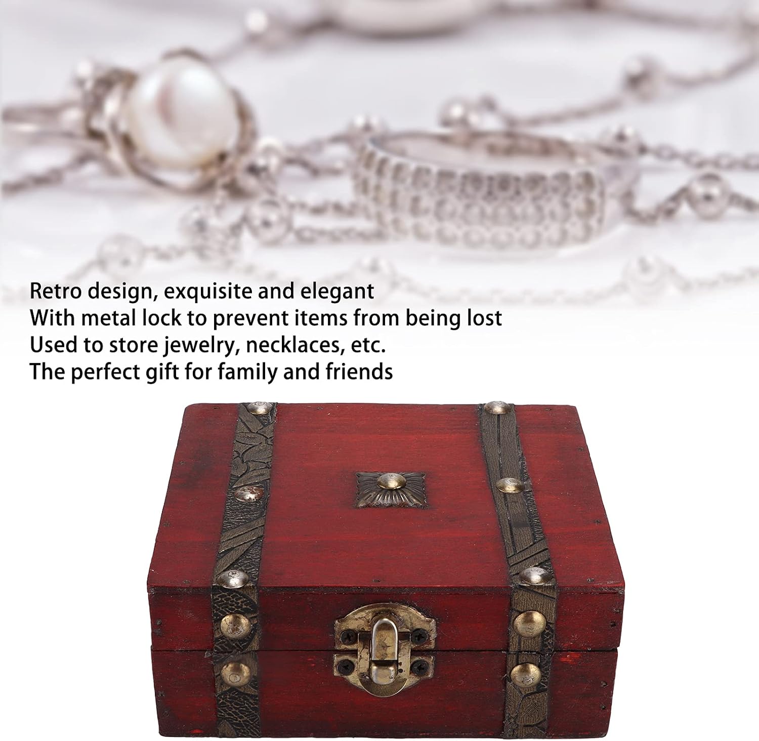 Wooden Storage Box, Vintage Decorative Box Retro Style Wood Storage Trunk Durable Elegant for Room Decoration for Office for Home