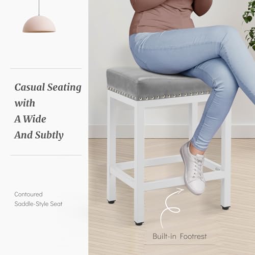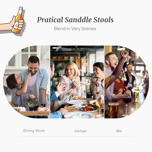 DUMOS Bar Stools Set of 4, 24 inch Counter Height Bar Stools, Upholstered Modern Kitchen Barstools with Metal Base, PU Leather Saddle Stools for Kitchen Island, Brown