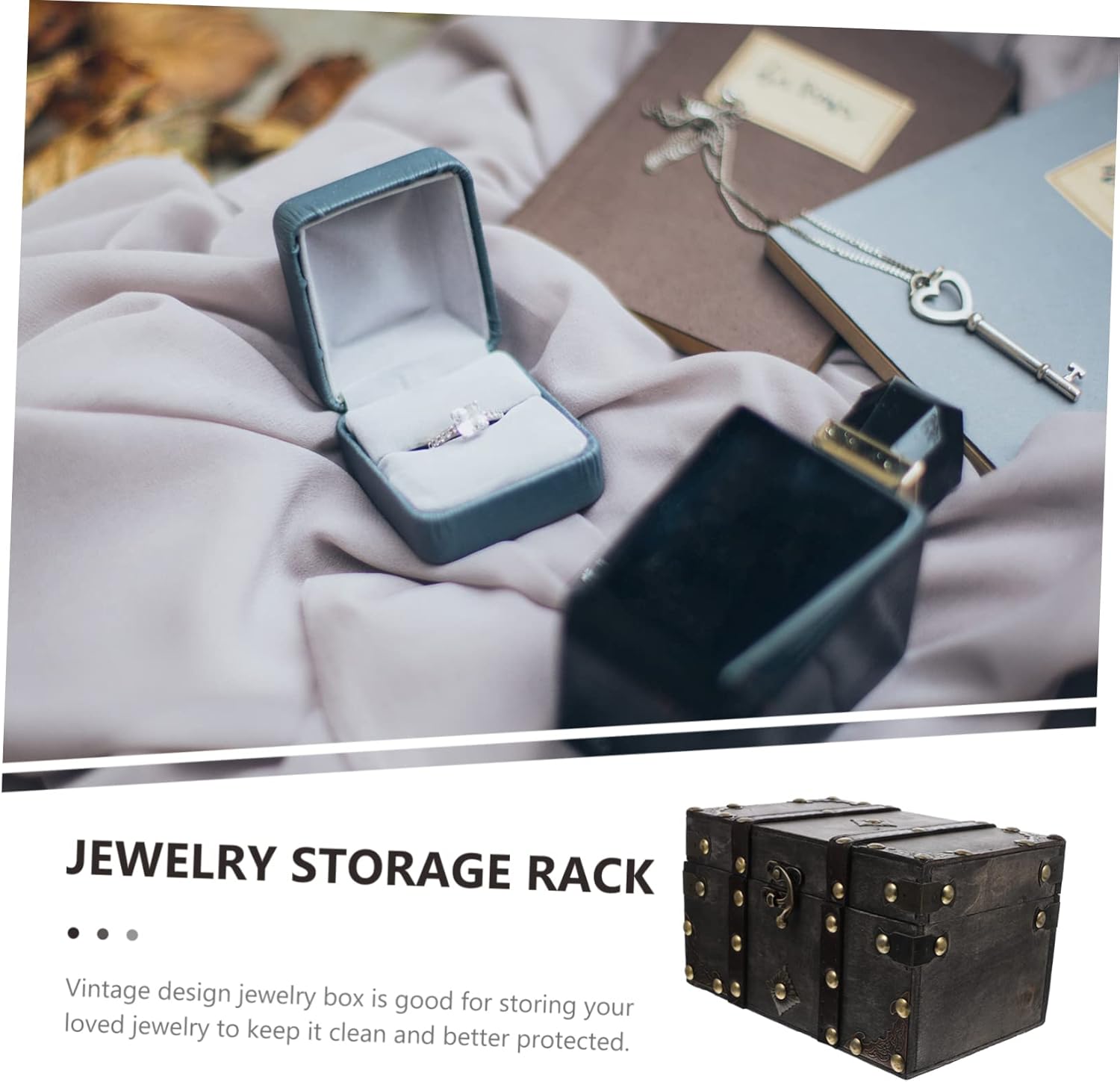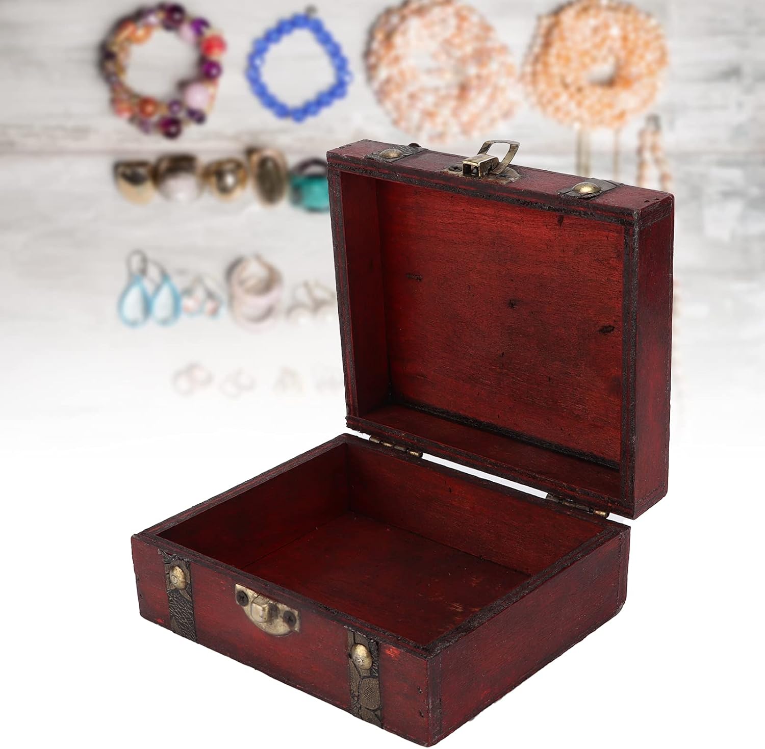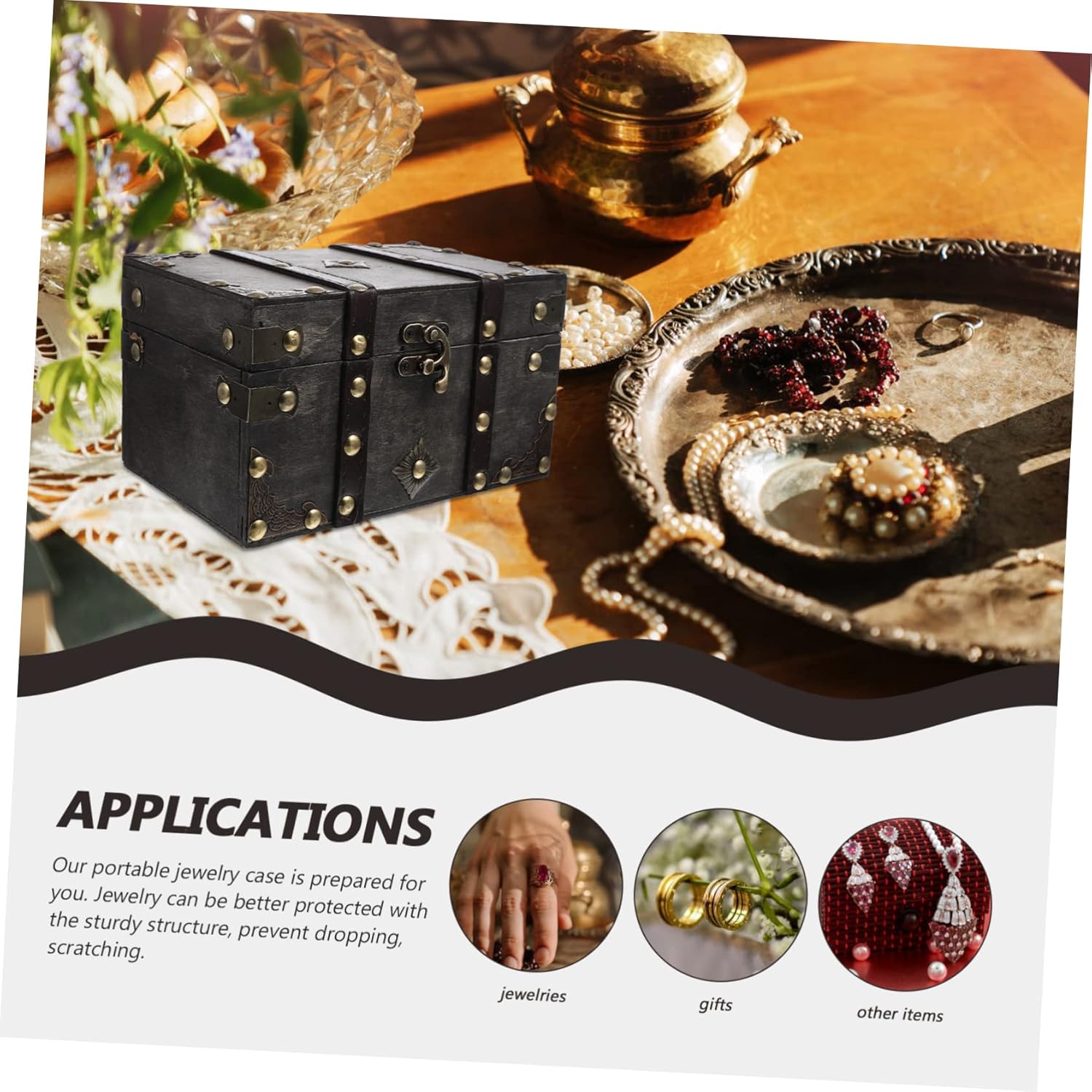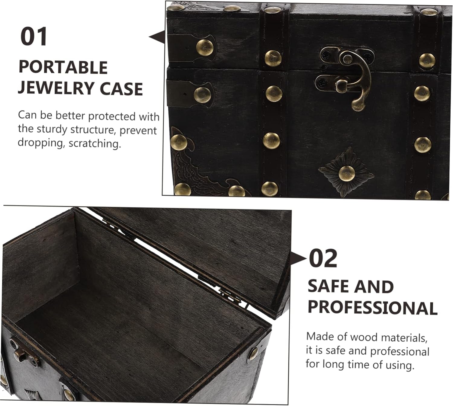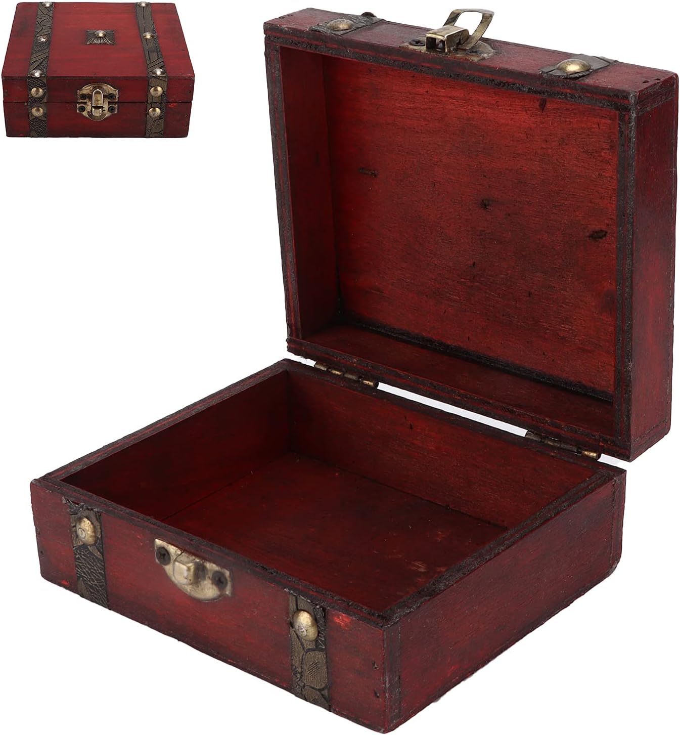 Vintage Decorative Suitcases Vintage Jewelry Boxes Retro Storage Decoration Box Wooden Treasure Chest Keepsake Boxes Storage Trunk (B As picture)
