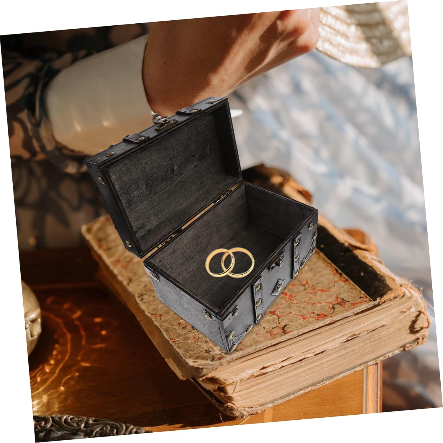Ciieeo 4pcs Box Wooden Retro Treasure Chest Storage Cases for Jewelry Sundries Storage Chest Storage Chests and Trunks Wooden Jewelry Decor Jewelry Organizer Glove Box Girl Earrings