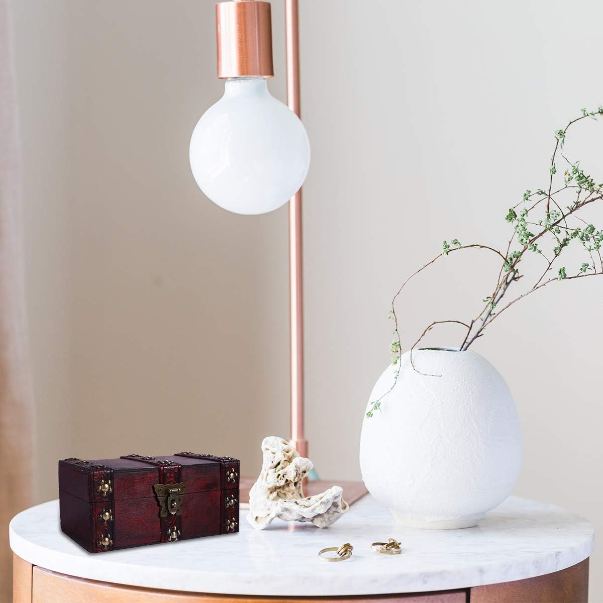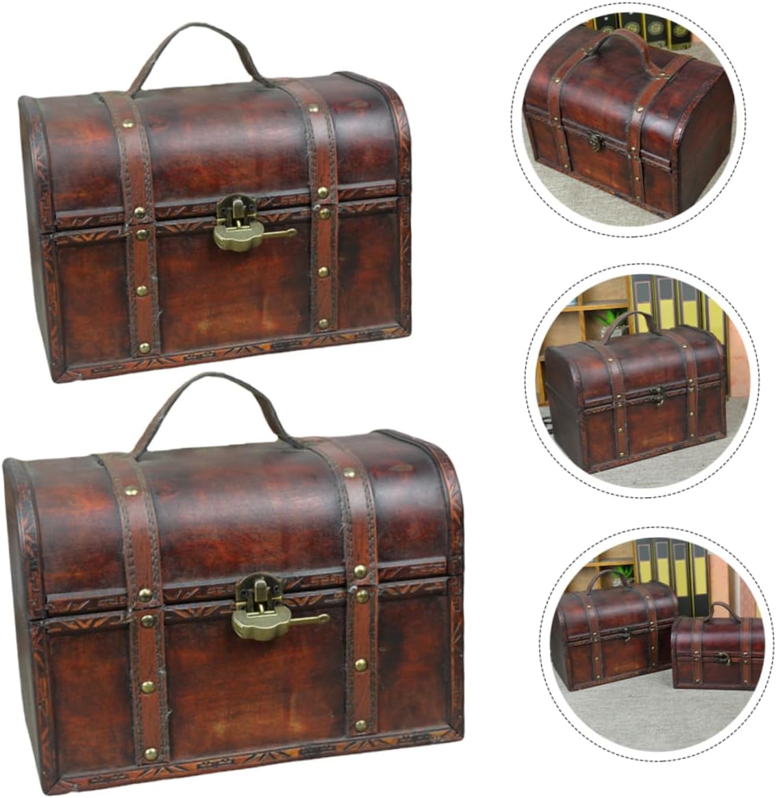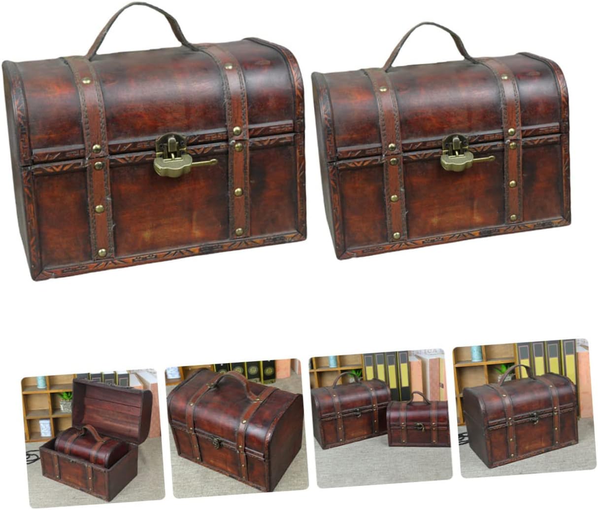 Garneck 2pcs Box small house storage box treasure chest with lock and key keepsake treasure case storage chest jewelry organizer trinket keepsake vintage trunk suitcase wooden pirate