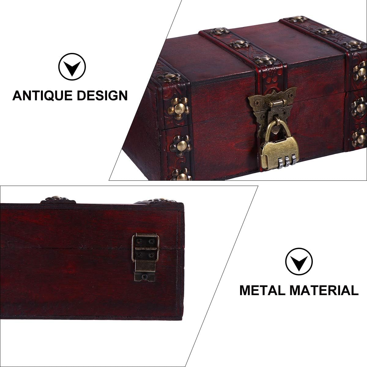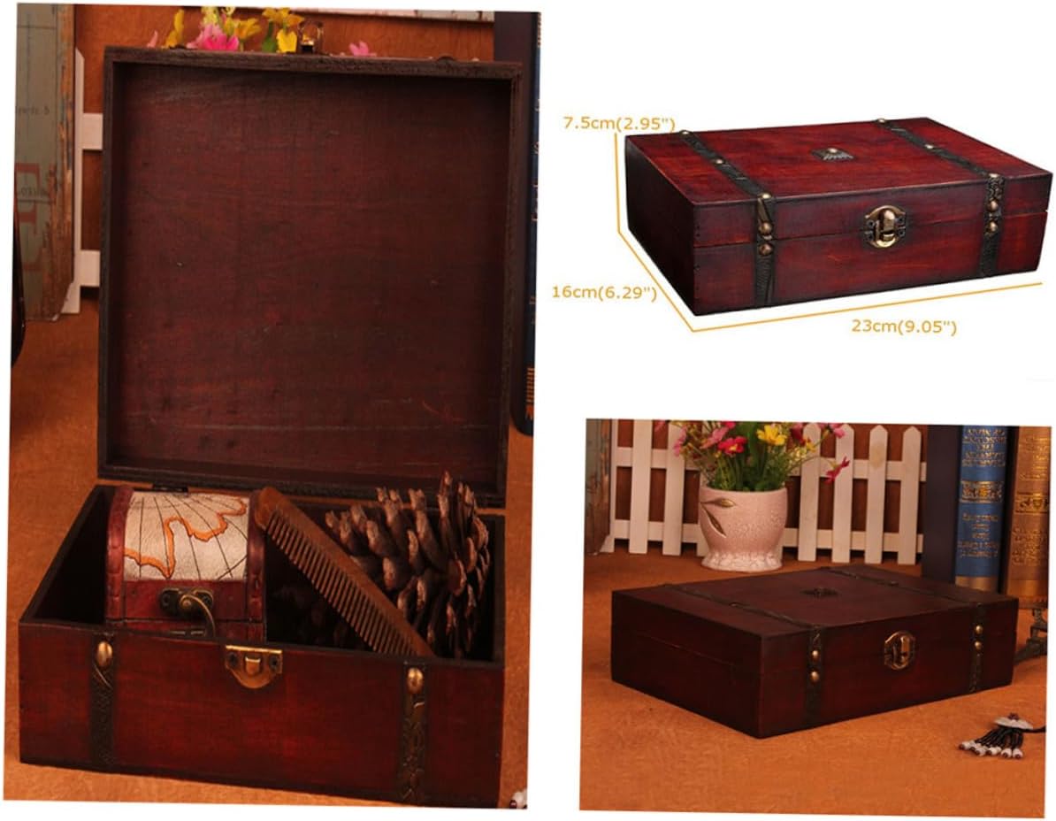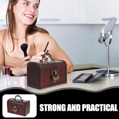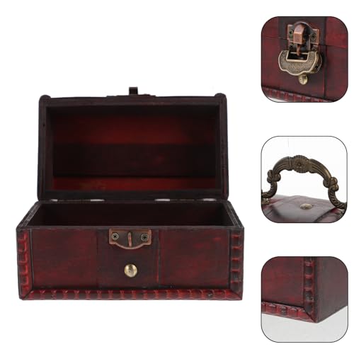 KESYOO 1 Pc Box Vintage Wooden Storage Box Small Vintage Treasure Chests Wooden Storage Trunks Pirate Decor Wooden Jewelry Organiser Wooden Jewelry Chest Keepsake Child Metal Candy Europe