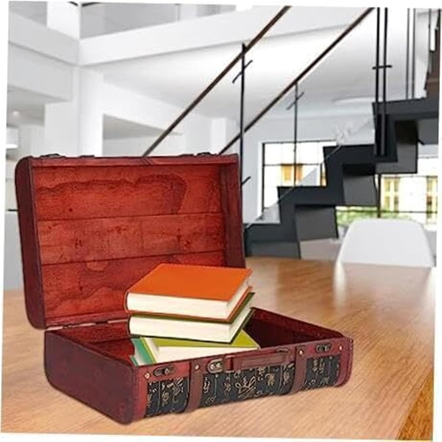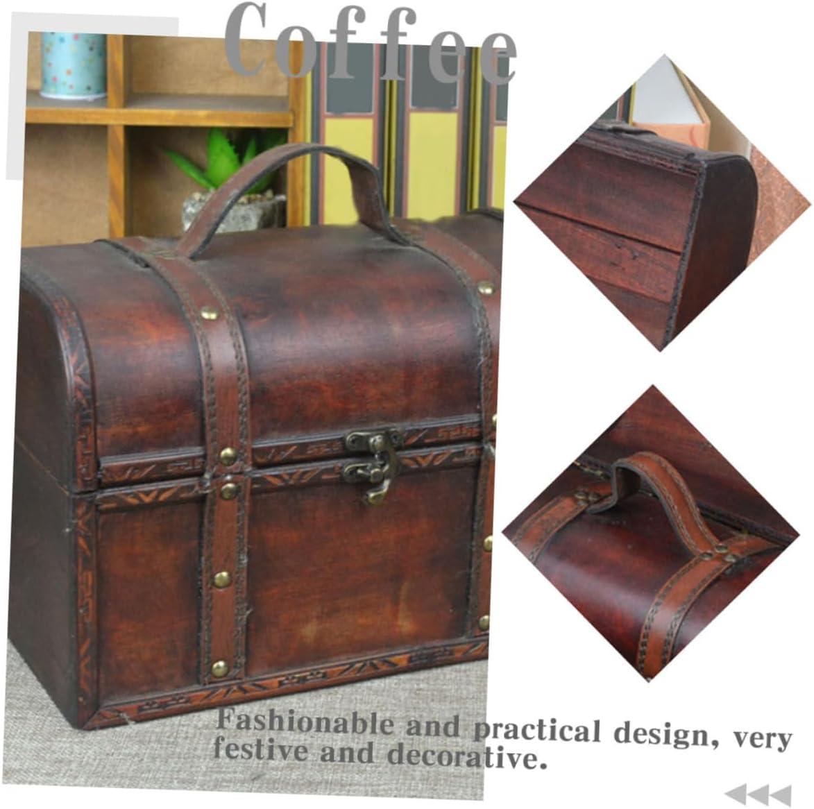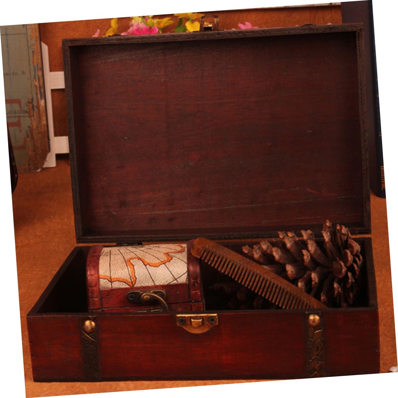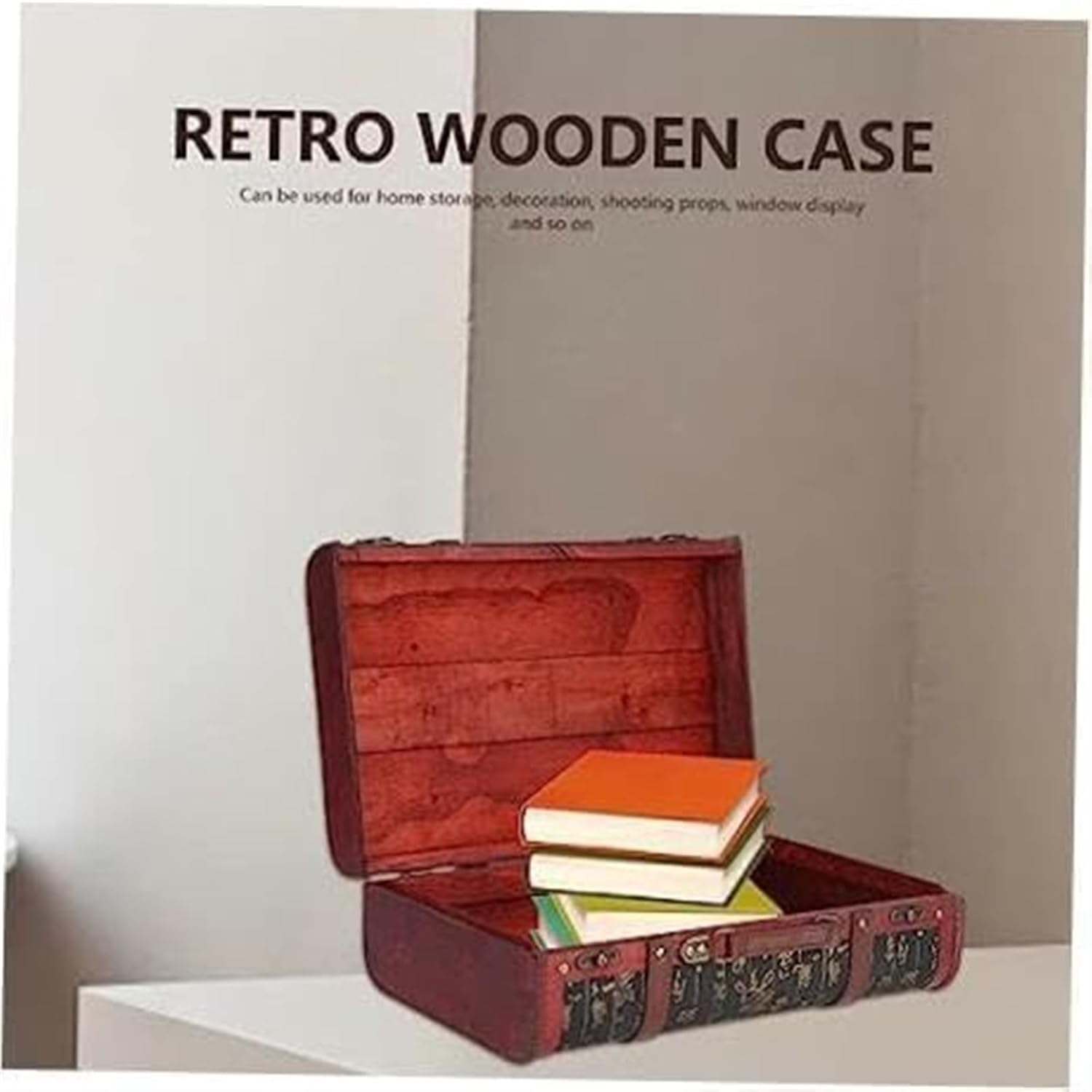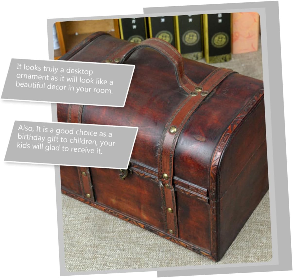 BuTkus Vintage Suitcase,Exquisite Craftsmanship Retro Wooden Chest, Vintage Treasure Trunk For Room Décor