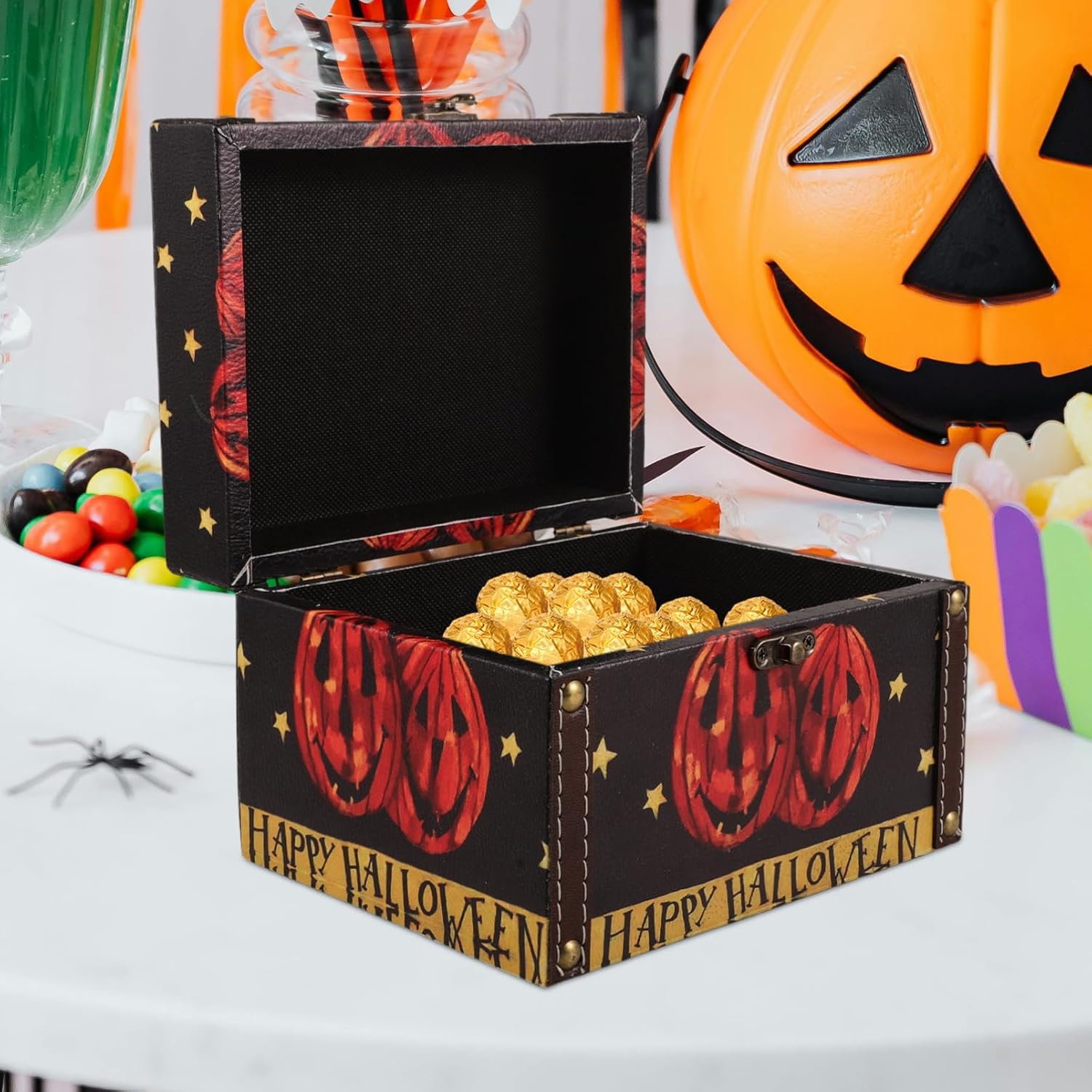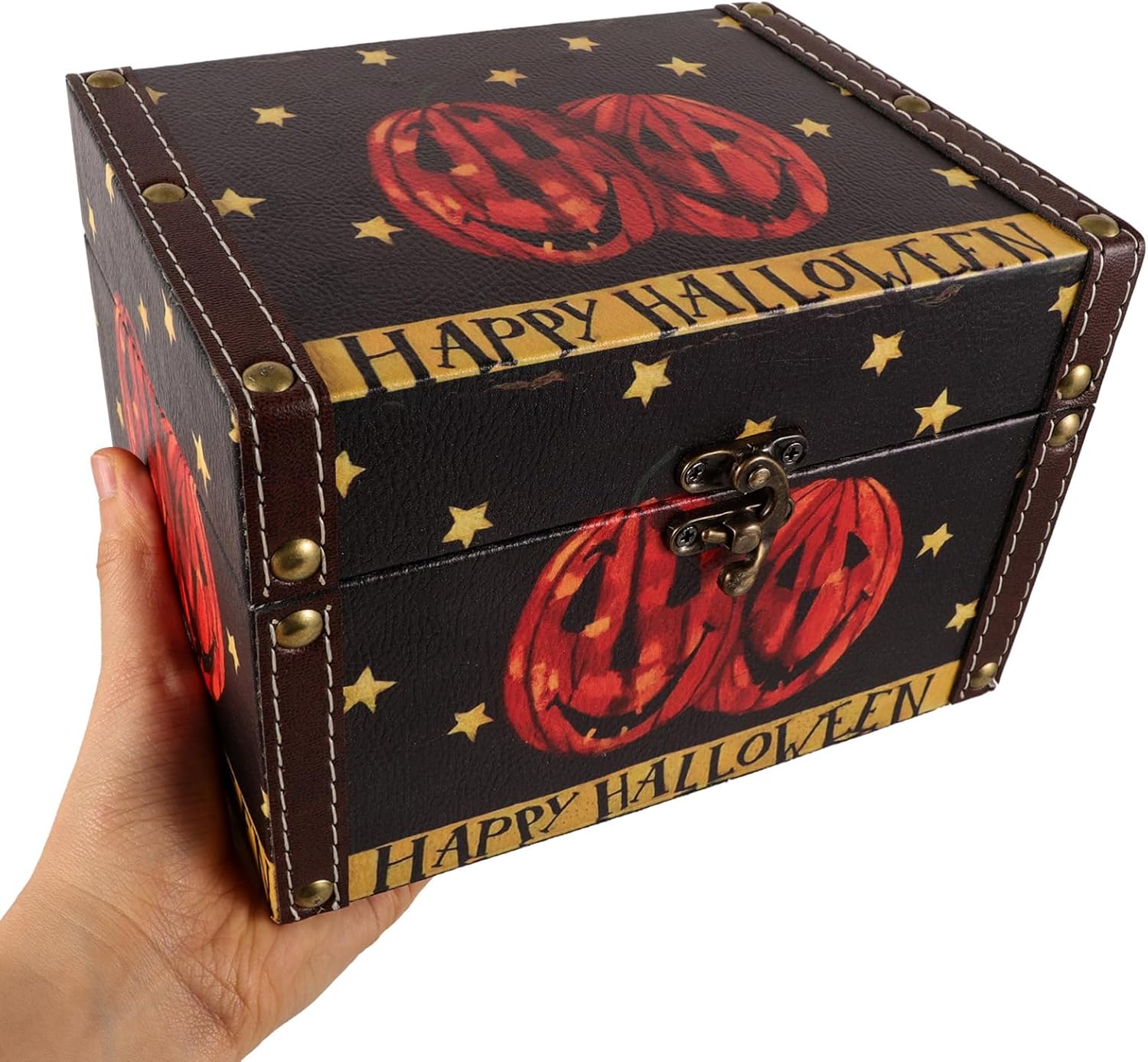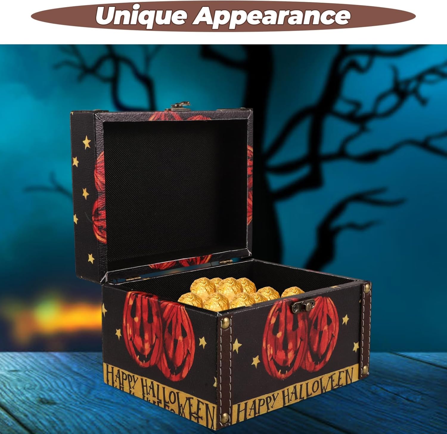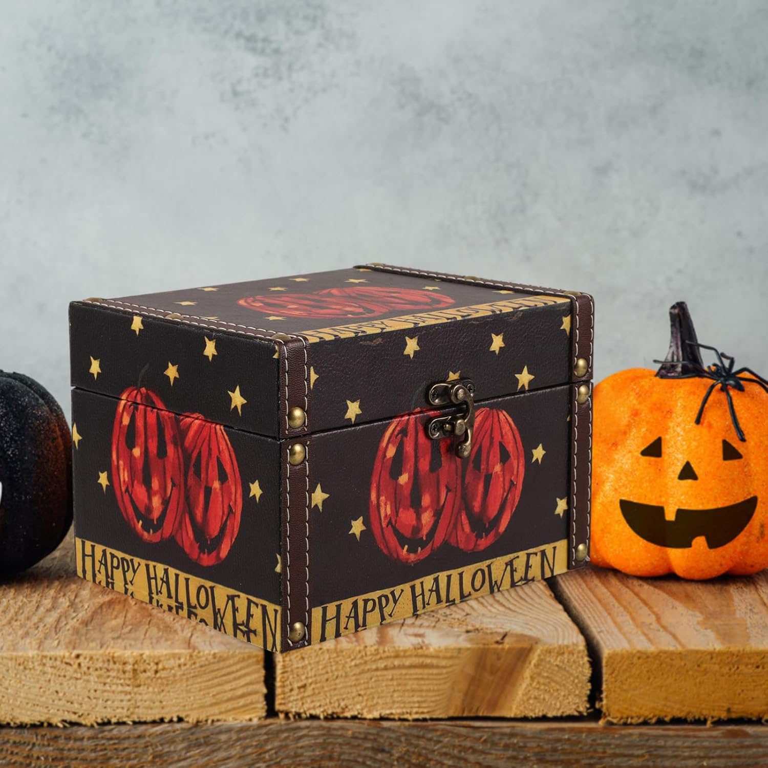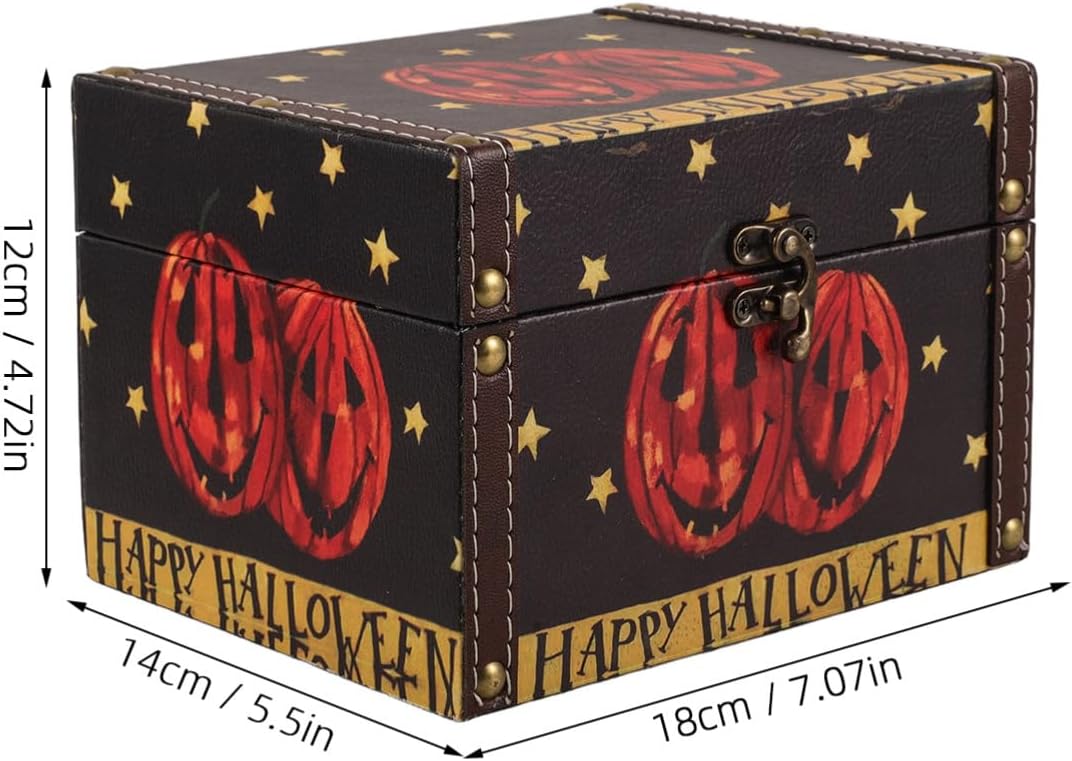BESTOYARD Halloween Wooden Storage Box, Small Wood Treasure Chest with Hinged Lid Decorative Trunk Candy Box Wedding Favor Box for Keepsakes Jewelry Storage Pirate Chest