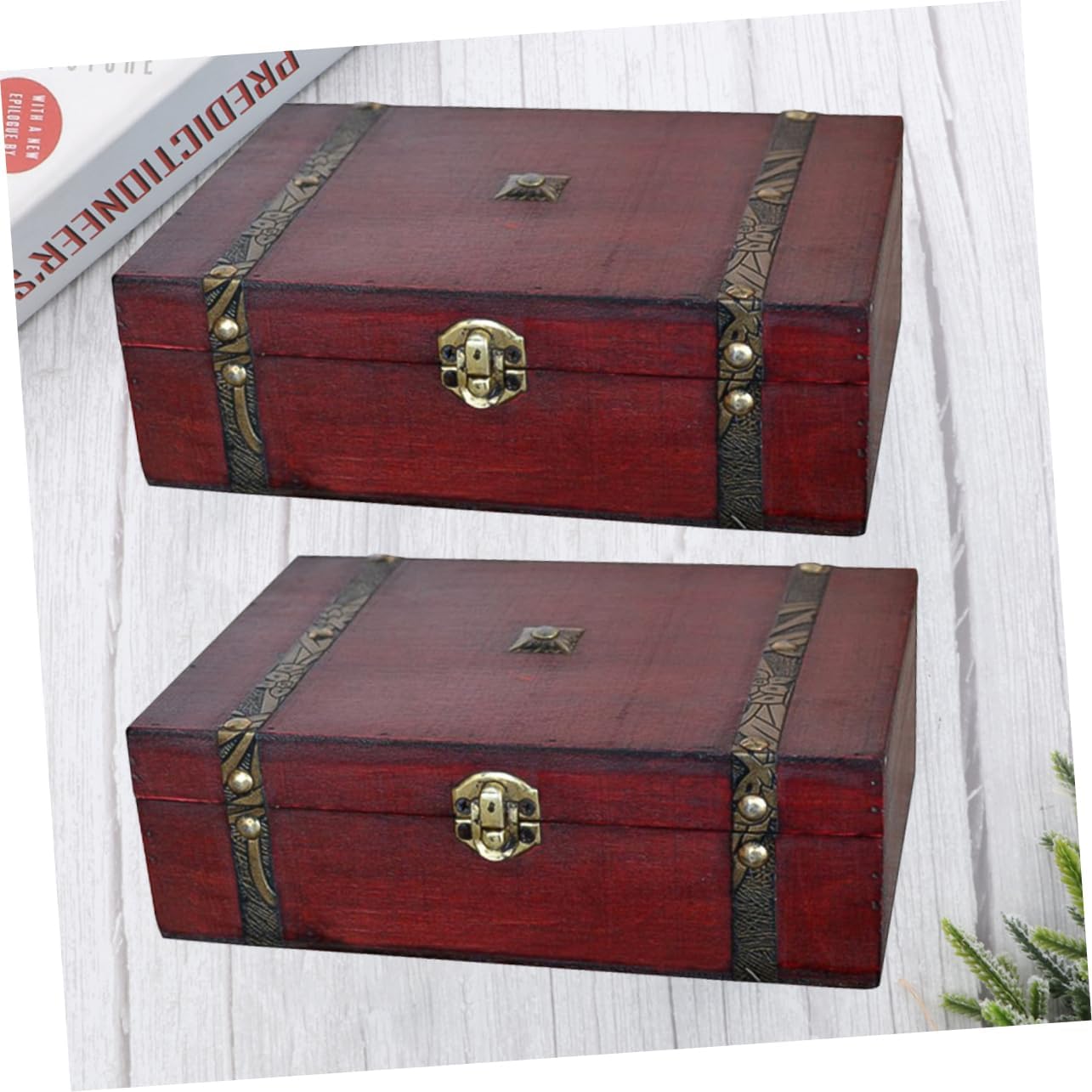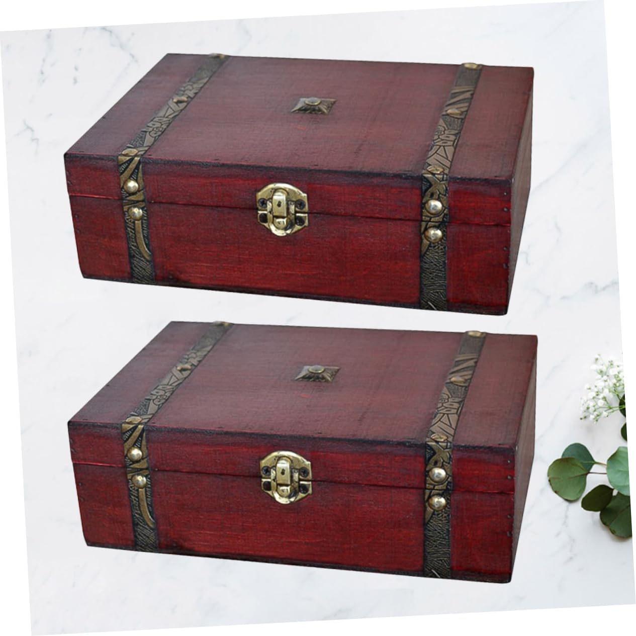 2pcs Box Wood Container Jewlrey Orgainzer Wooden Storage Trunk Desktop Antique Wooden Chest Wrapping Boxes for Large Wooden Chest Accessories Tray Vintage Packing Box