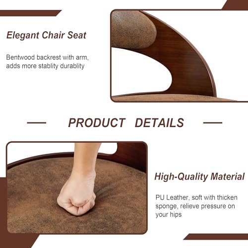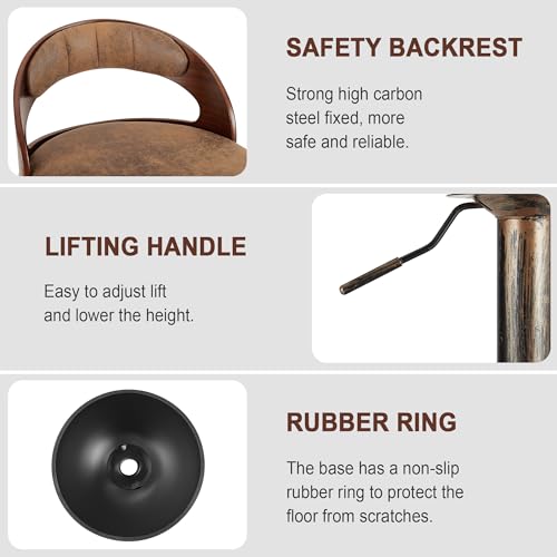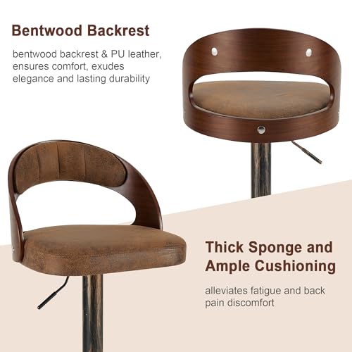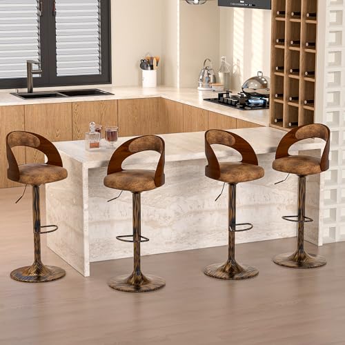 VECELO Bar Stool Set of 4, Kitchen Island Stools with Bentwood Back,Arm&Footrest, PU Leather Cushion Seat Adjustable Height 360° Swivel Barstools for Club Pub,Kitchen Dining Room,White