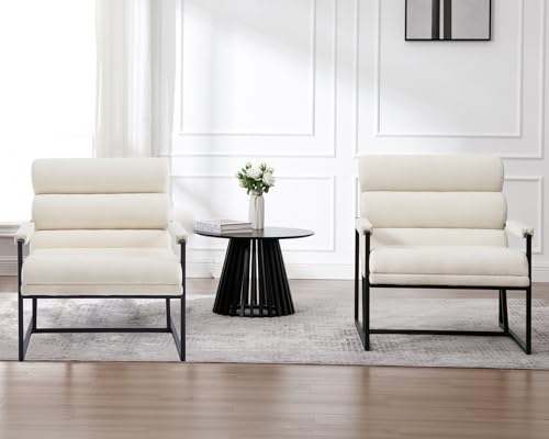 Modern Accent Chairs Set of 2 Clearance, PU Leather Button Tufted Upholstered Arm Chairs with Black Metal Frame, 25.5" Wide Lounge Chairs Living Room Chairs for Bedroom Small Spaces Office, Brown