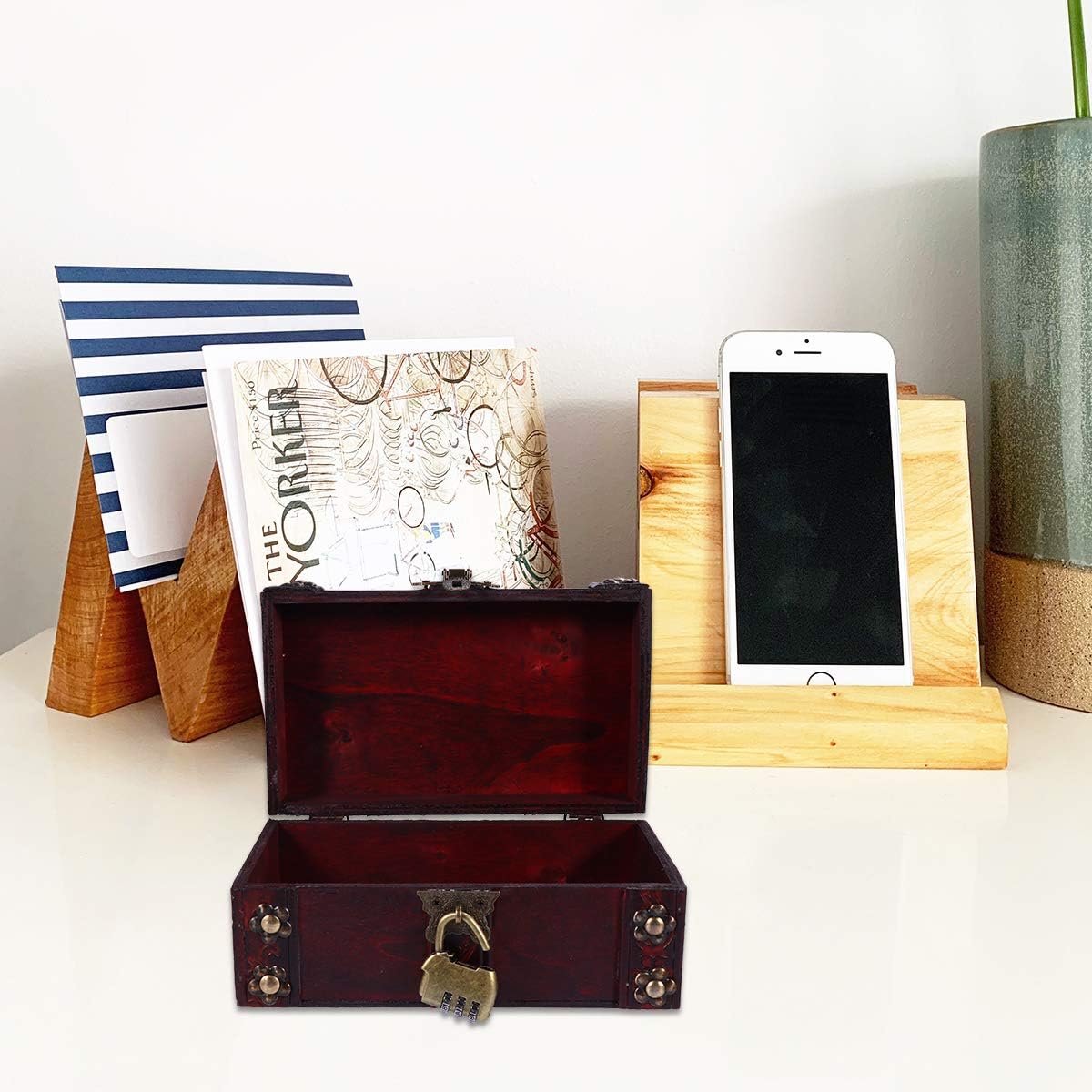 Antique Wooden Pirate Chest Vintage Wooden Storage Trunk Retro Decorative Keepsake Jewelry Box Handmade Craft Box With Paddle Lock for Jewelry Trinket