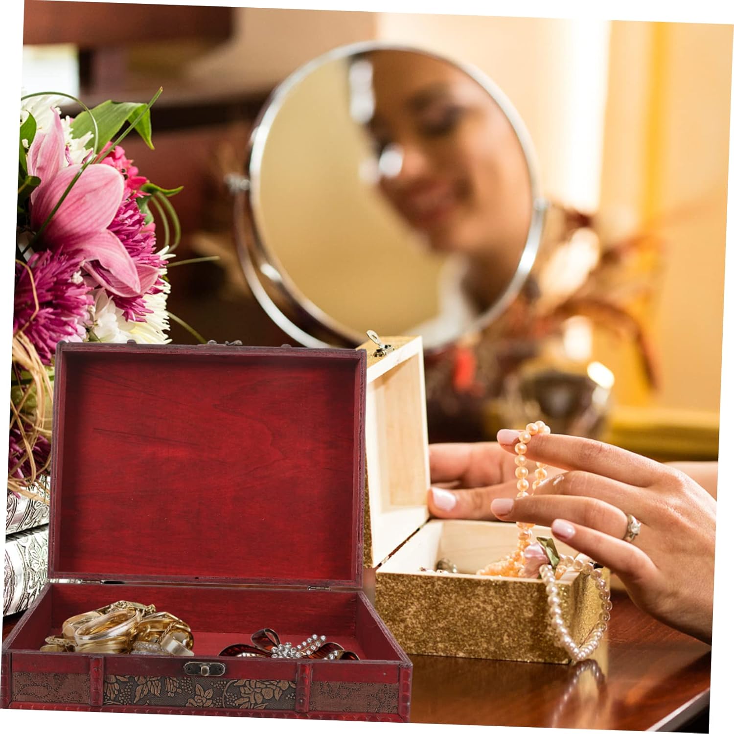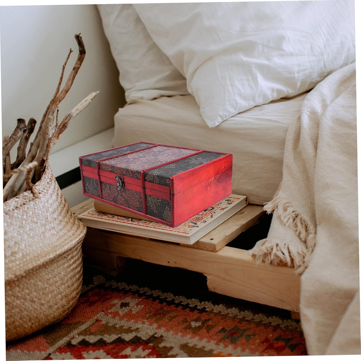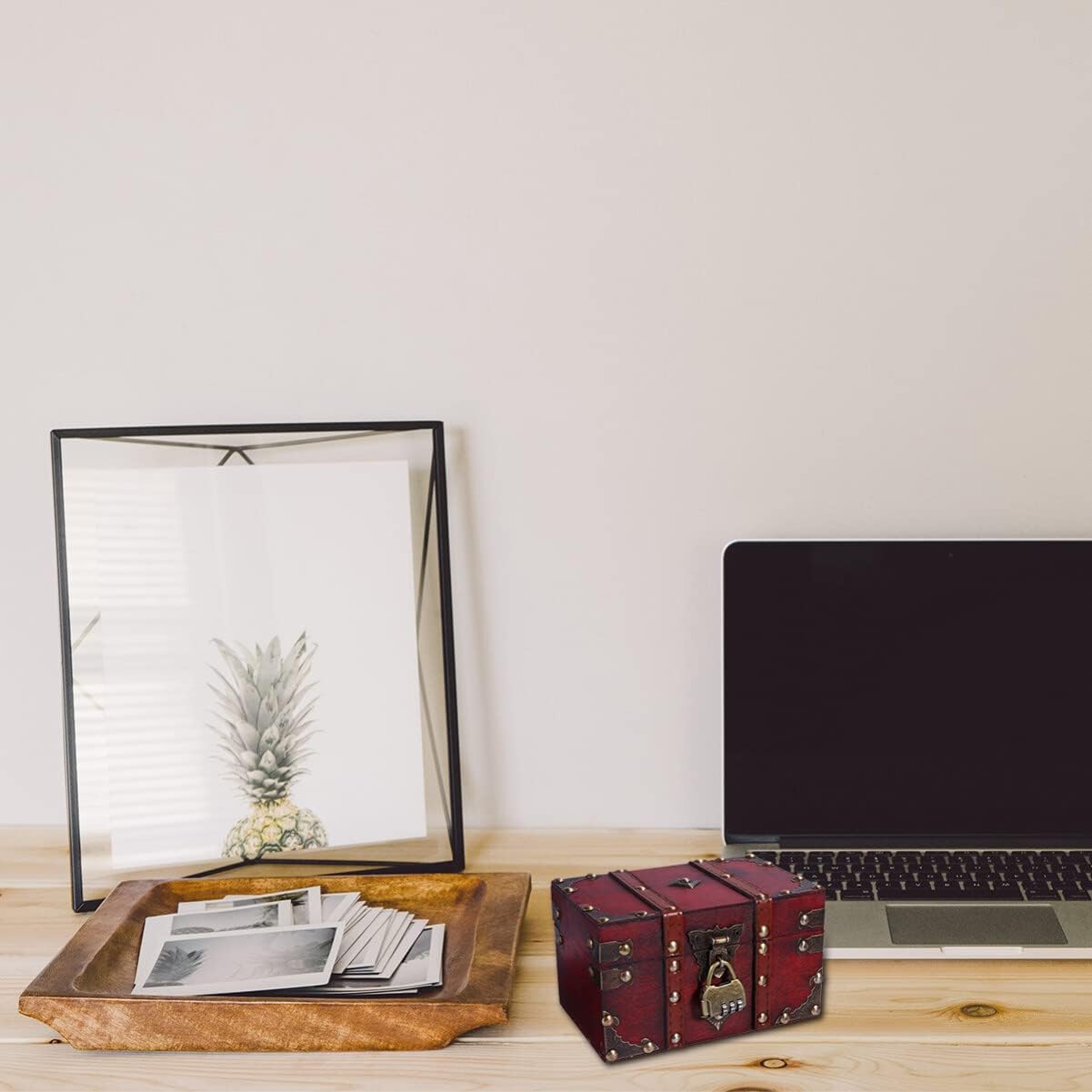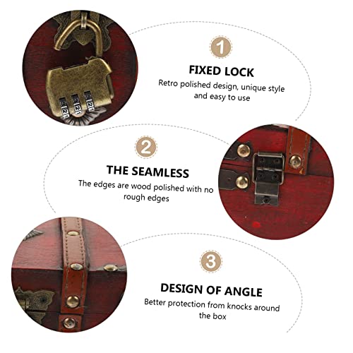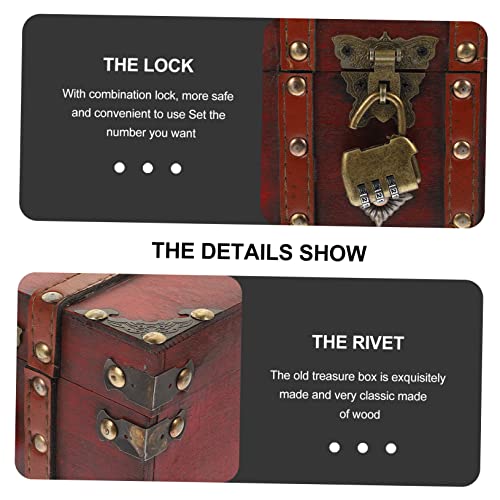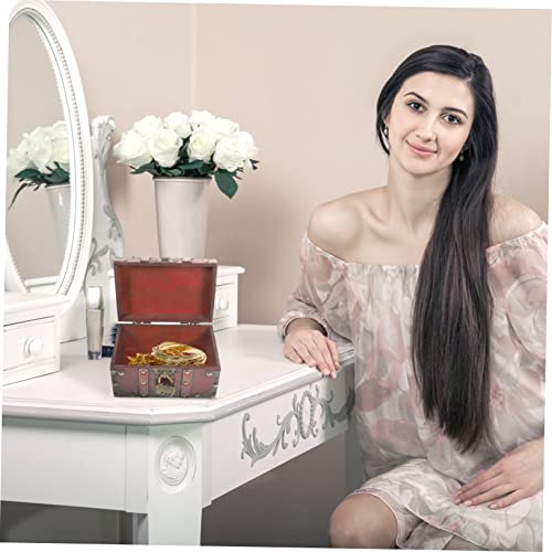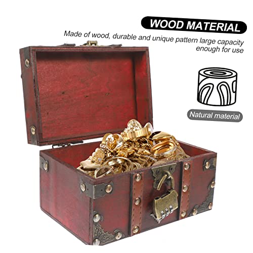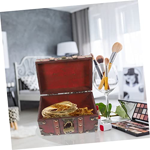 PRETYZOOM 5pcs Box Vintage Treasure Chest Boxes Locking Storage Trunk Pirate Treasure Trunk Retro Decor Jewelry Storage Case Earring Stand Keepsake Chest Suitcase Stand Lids Red Wooden