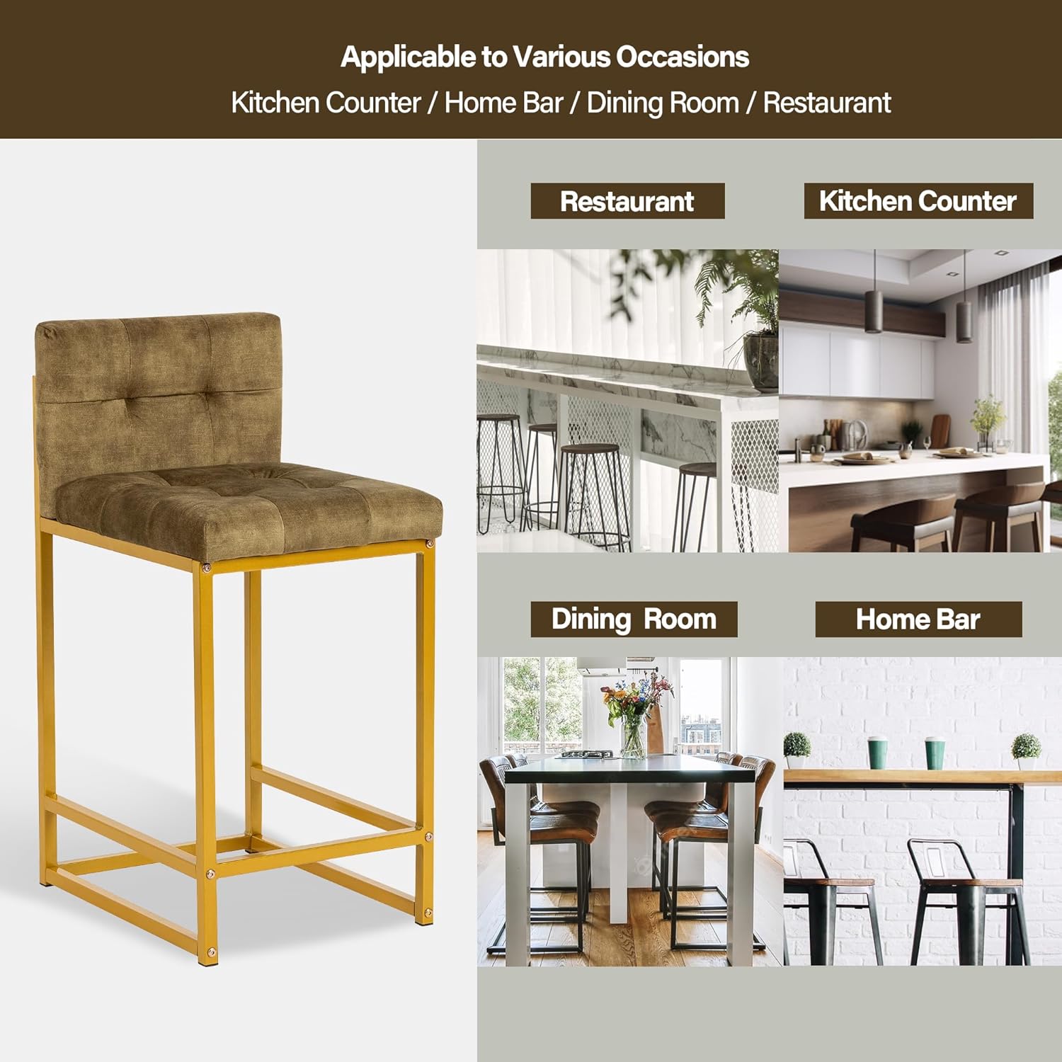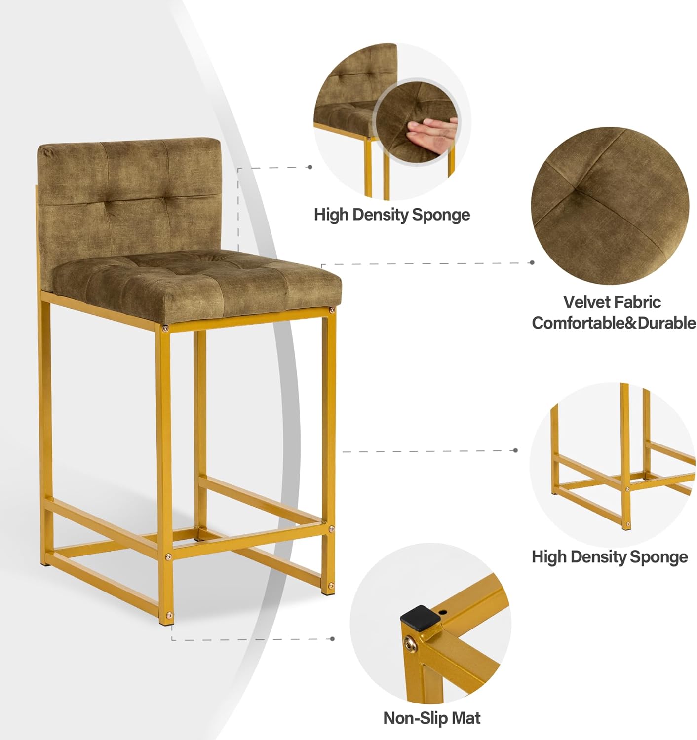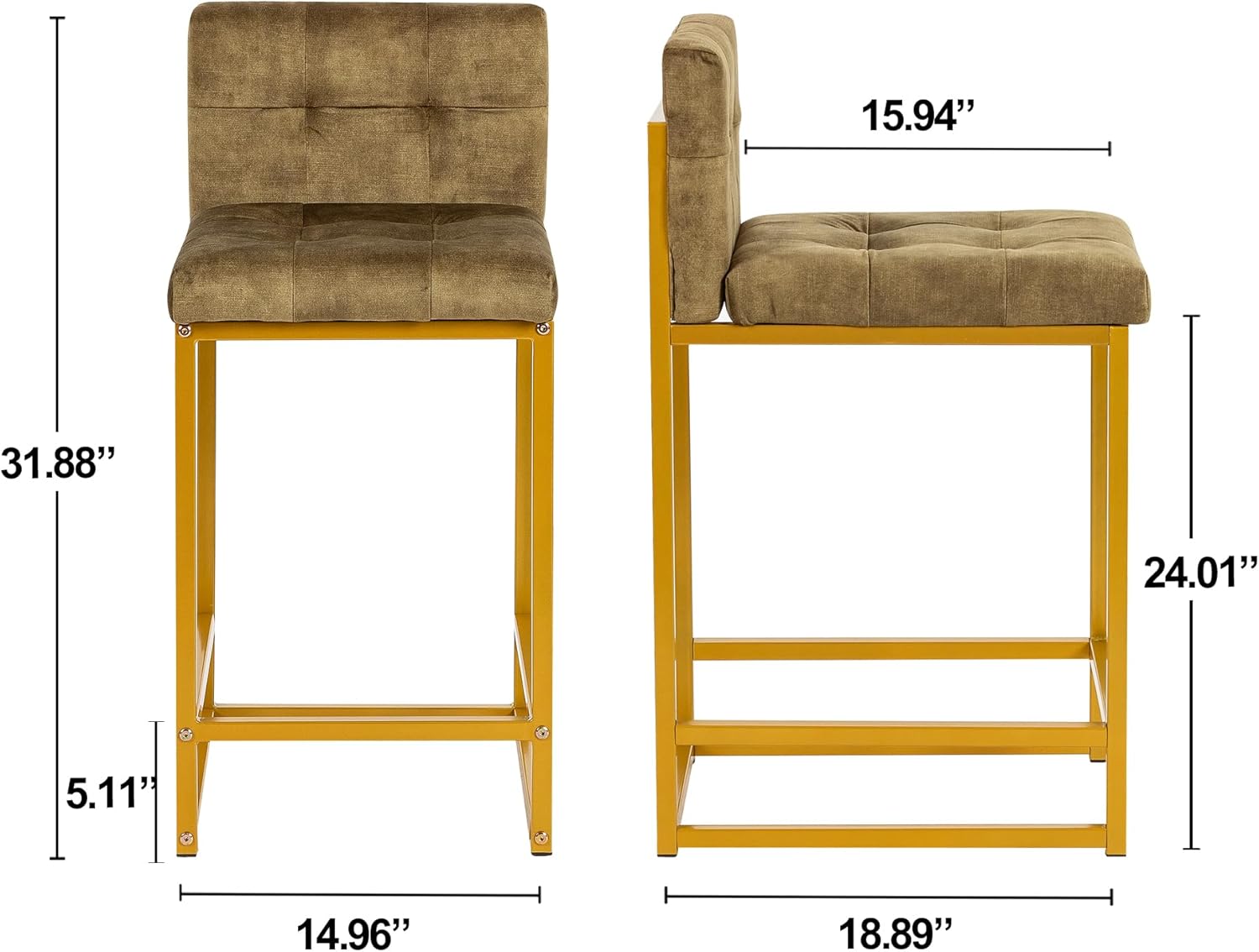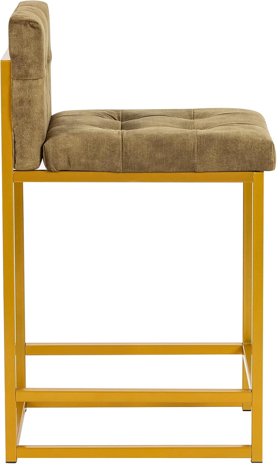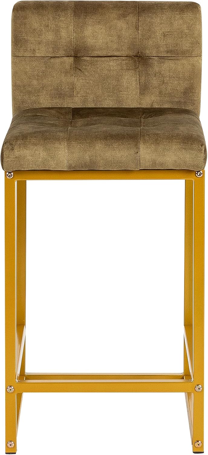 GIA 24 Inch Counter Height Square Backrest Bar Stools for Kitchen Island,Upholstered in Velvet with Gold iron Leg,Set of 2,Green