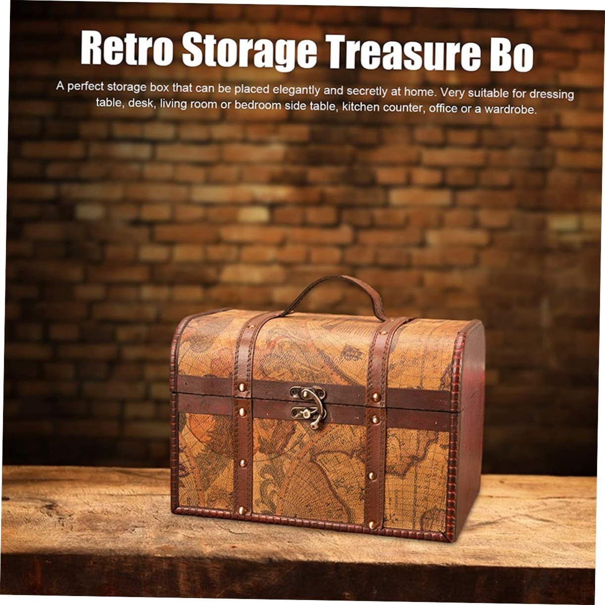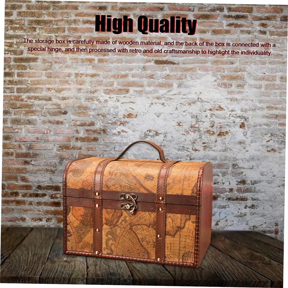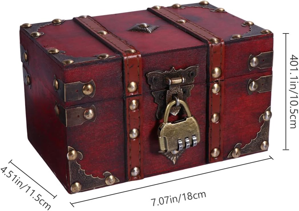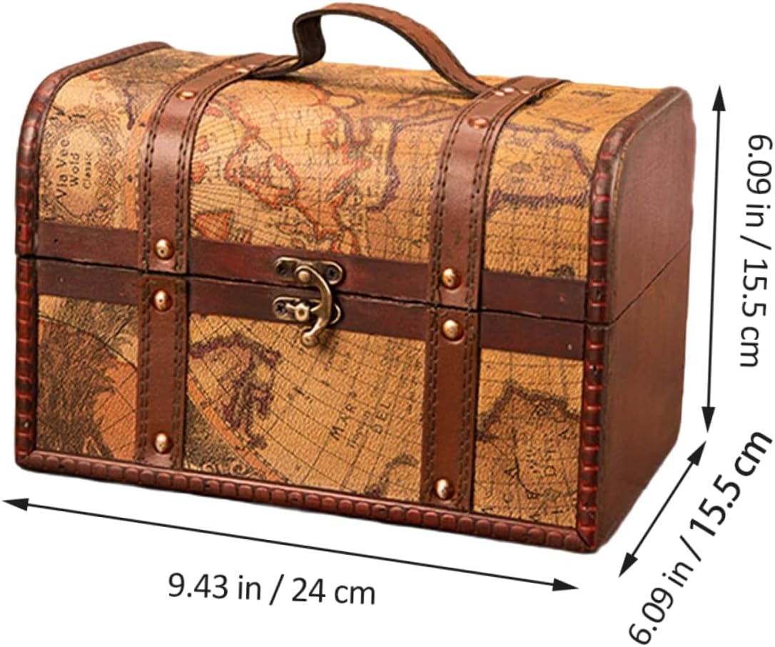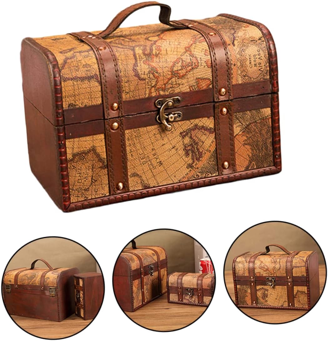 KESYOO Vintage Wooden Treasure Box Storage Trunks Storage Chests with Metal Lock Jewery Case Gift Box for Home Dormitory Jewery Cosmetic