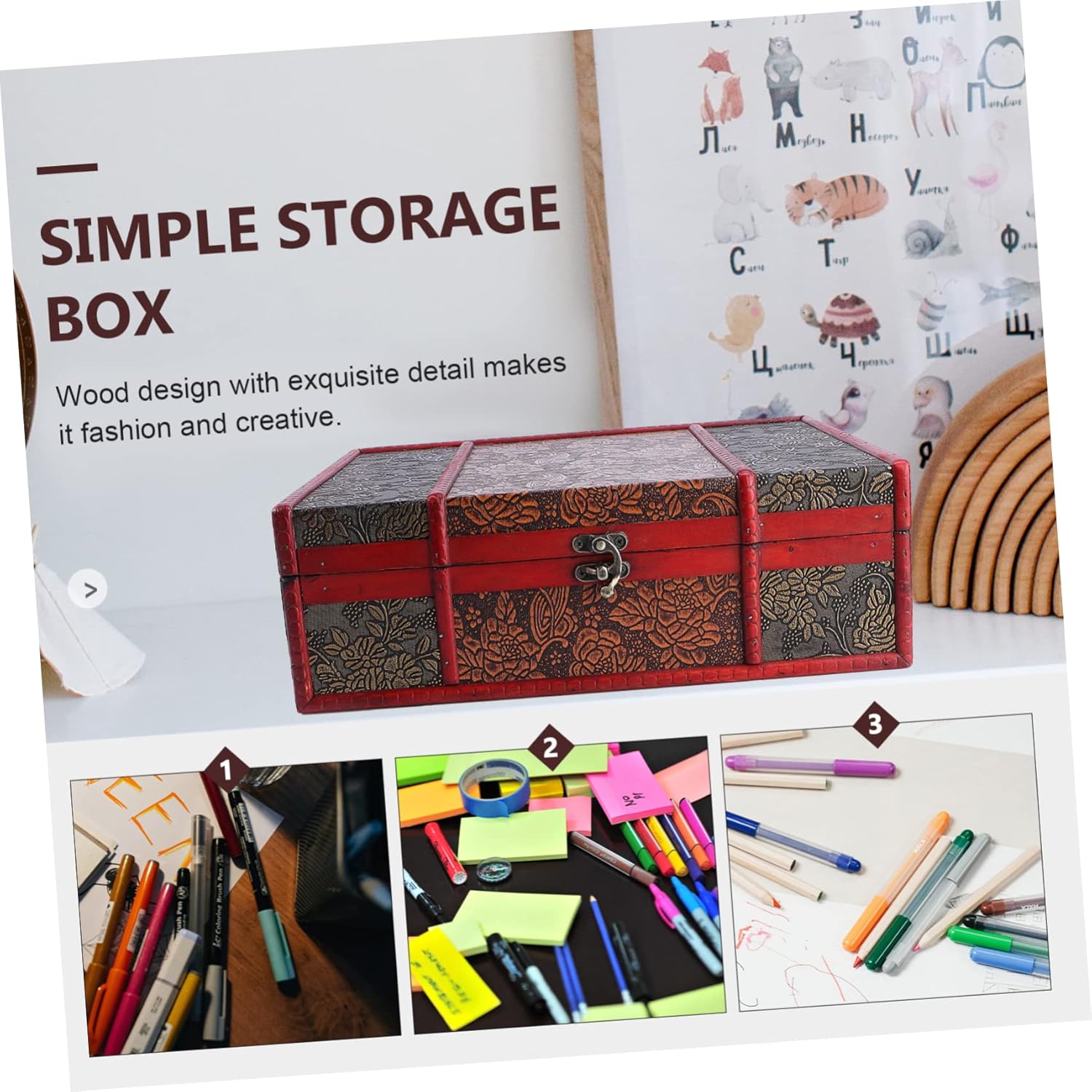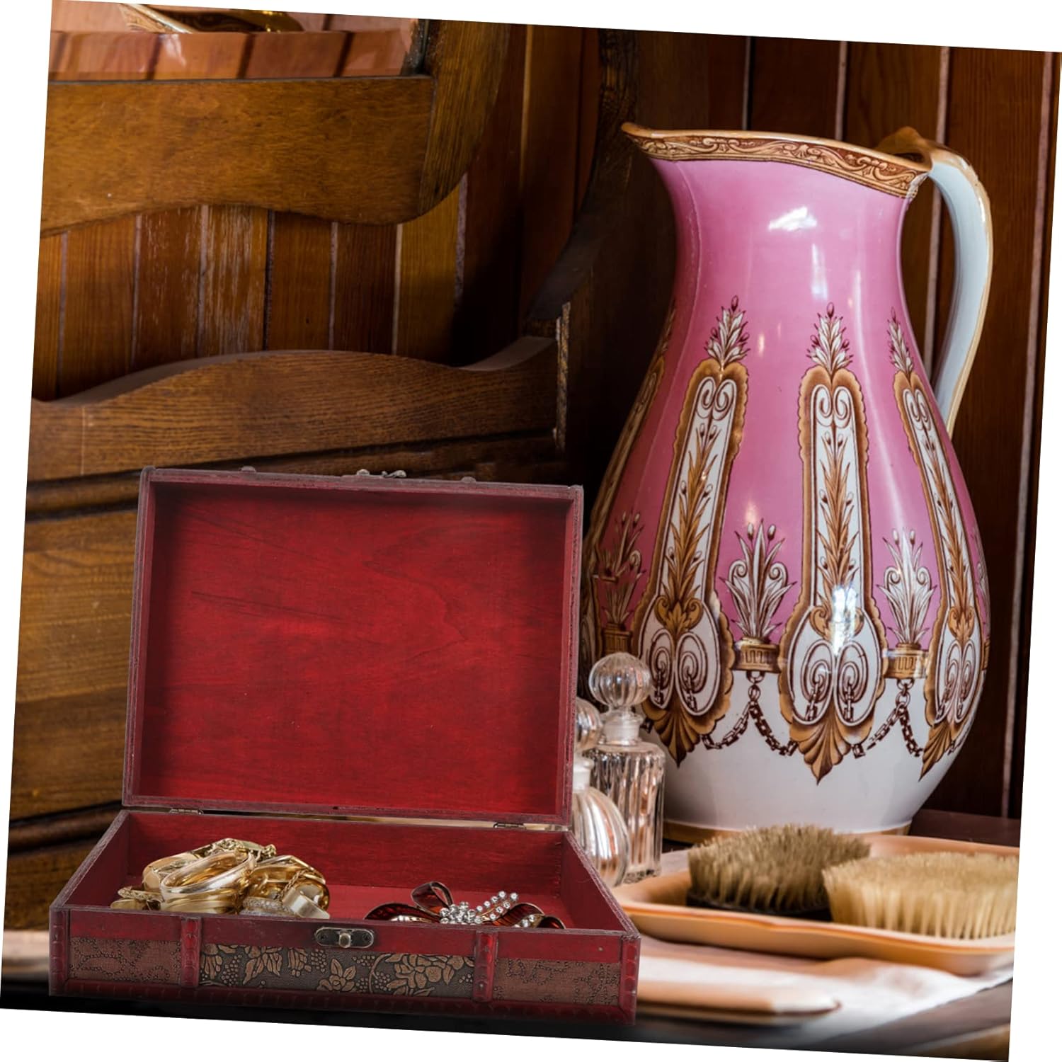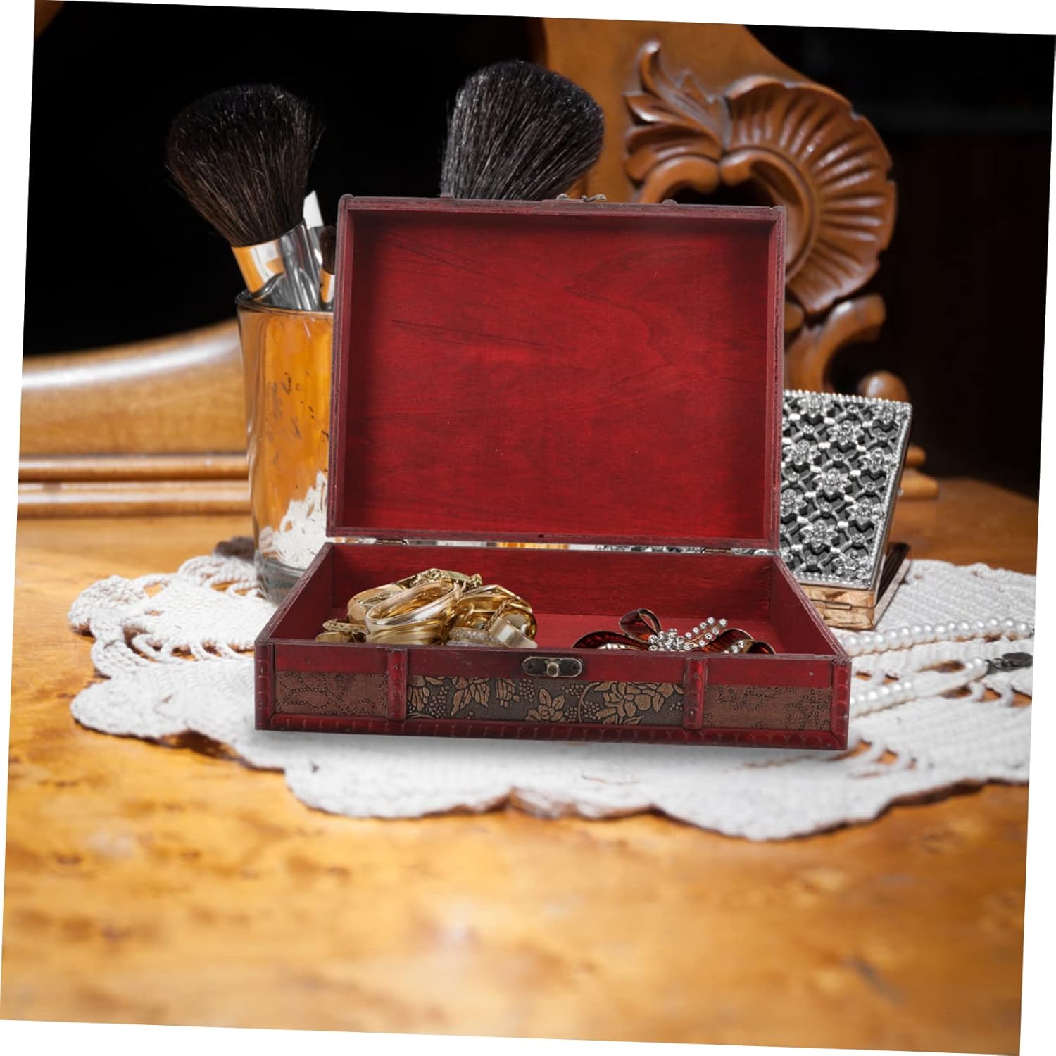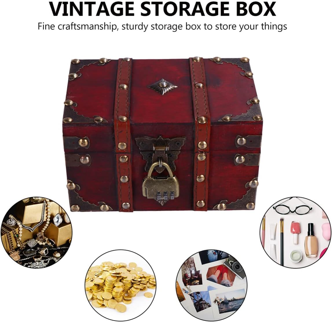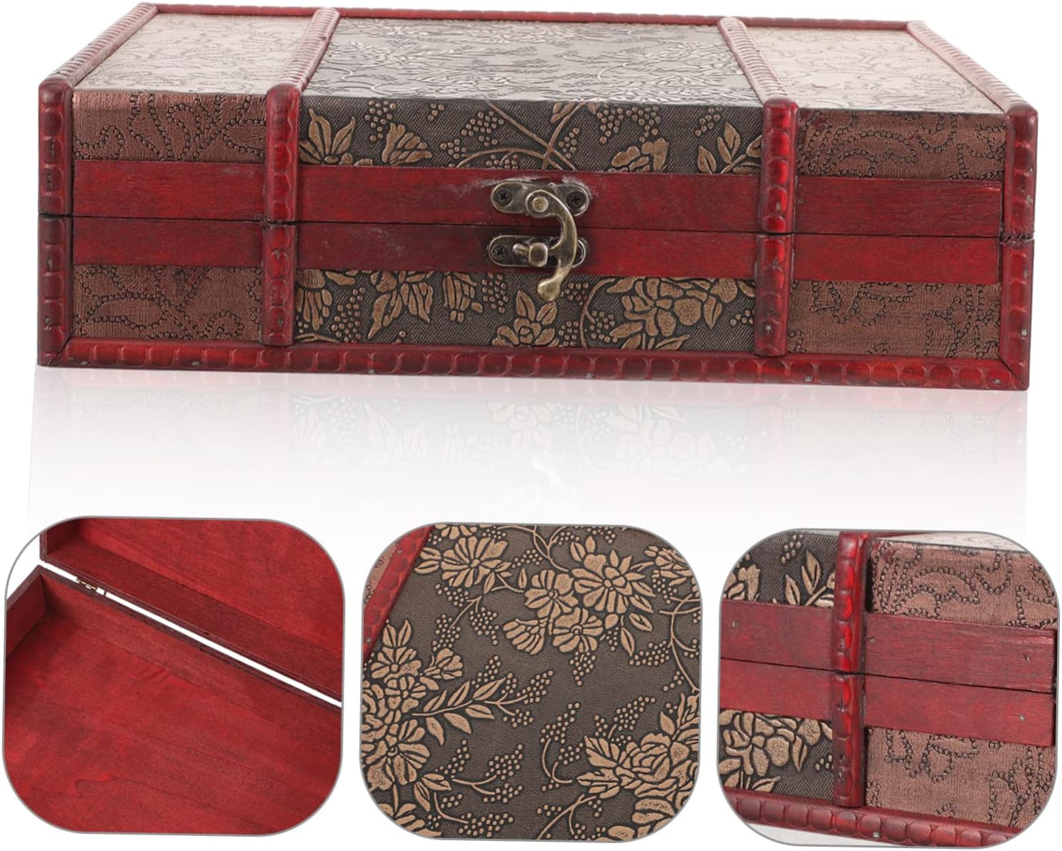 ABOOFAN Storage Box with Lock Vintage Jewelry Case Storage Bins with Lids Storage Bin with Lids Chest Decorative Storage Boxes Locking Storage Trunk Vanity Case Wooden Antique
