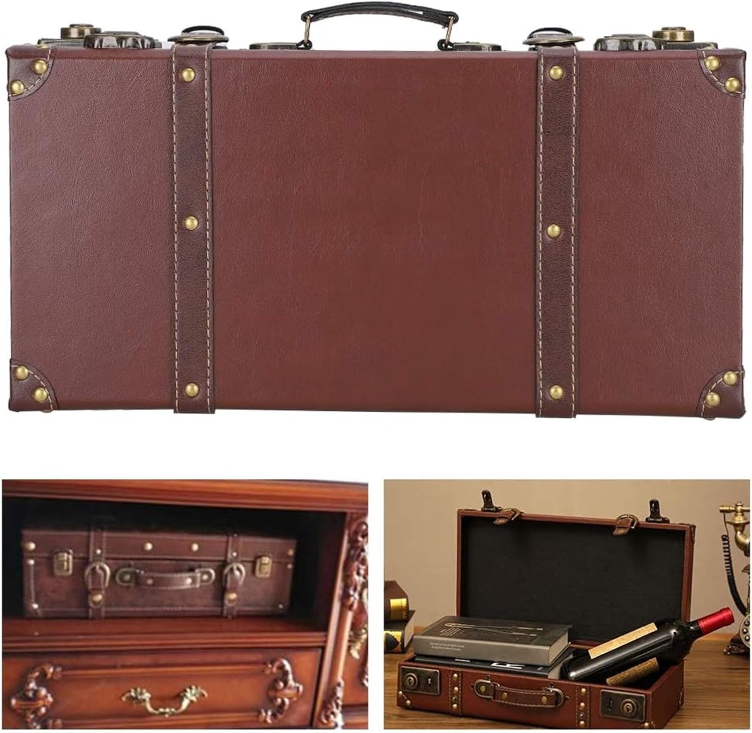 Wooden Storage, Decorative Suitcase Trunk Box, Old Style Suitcase For Keepsake Bedroom Display Or Party Decor