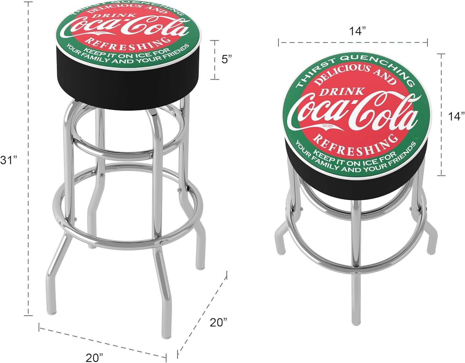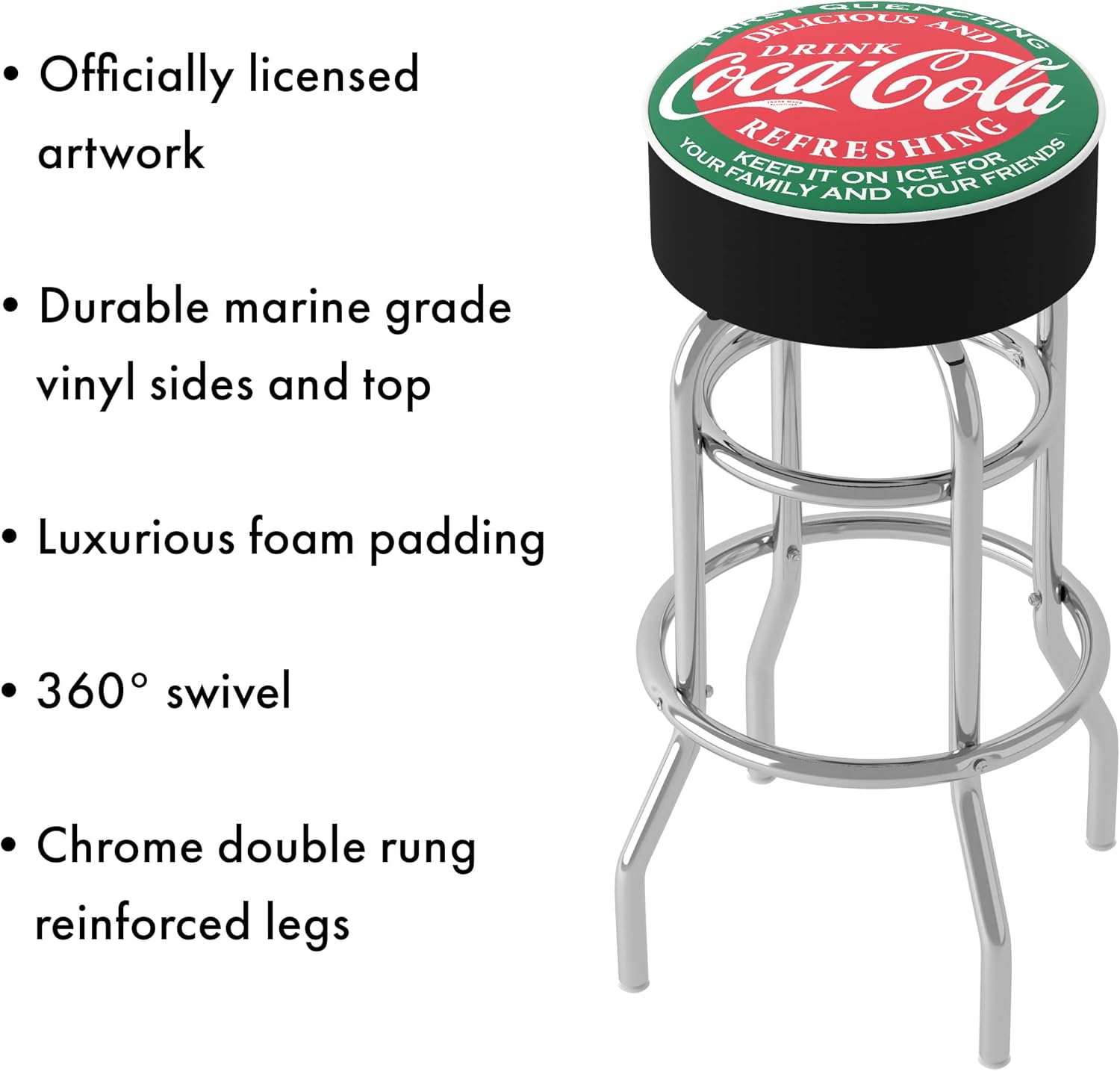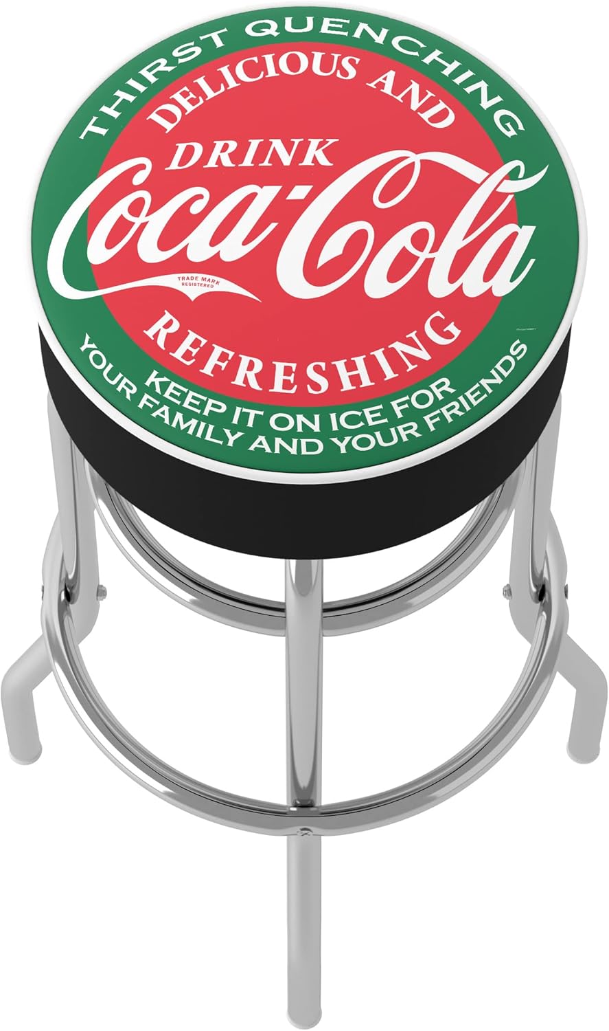 Bar Stool - Coca-Cola Red & Green Stool with Foam Padded Seat - Swivel Chair for Game Room, Garage, or Home Bar by Trademark Gameroom