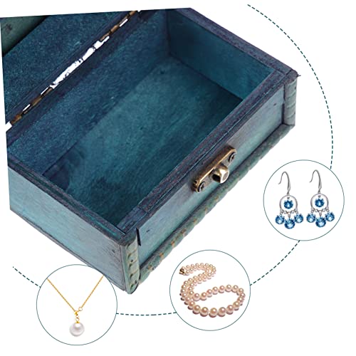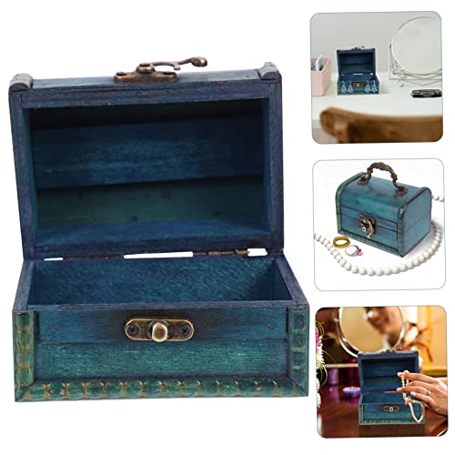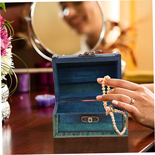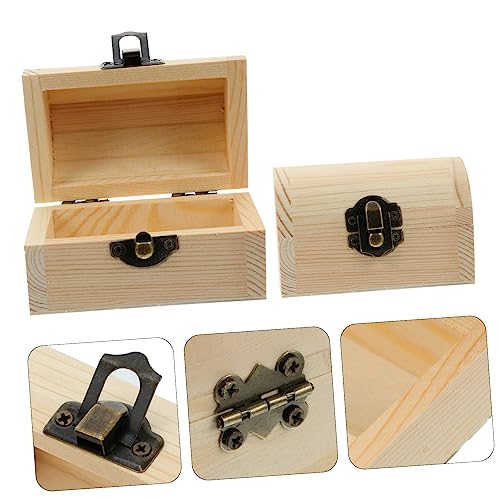 ABOOFAN 2pcs Boxes Wedding Jewelry Wooden Storage Chest Desk Top Decor Pirate Treasure Chest Wood Jewelry Storage Case Desk Topper Makeup Storage Case Trunk With Lock Ring Bamboo