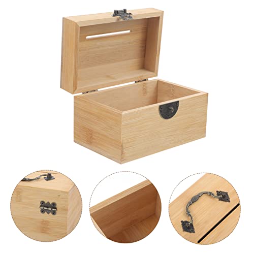 Alipis 3pcs bamboo and wood piggy bank wooden trunk chest storage cubes with lid wooden jewelry money treasure chest for kids bamboo trinket container with lock child Zinc alloy safe