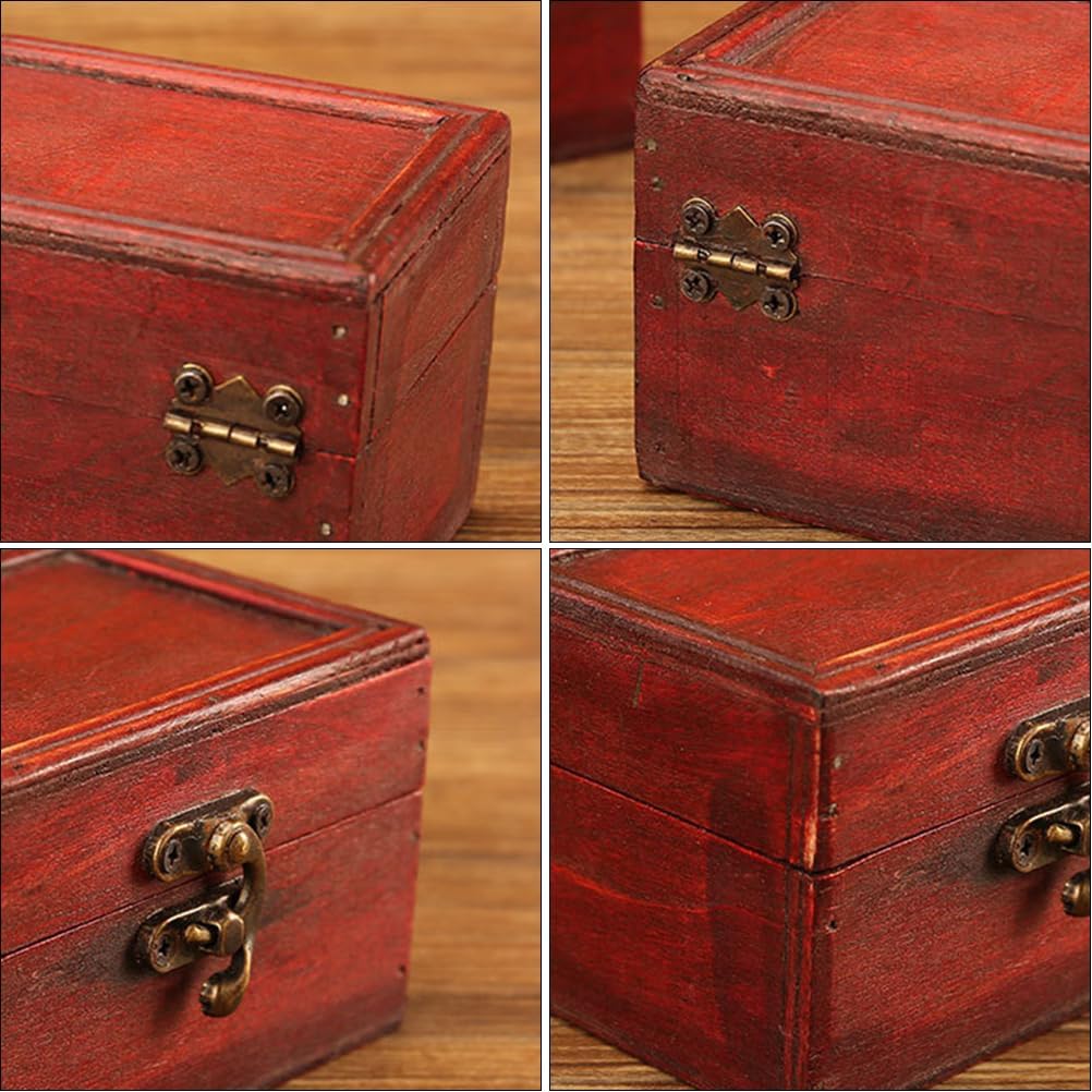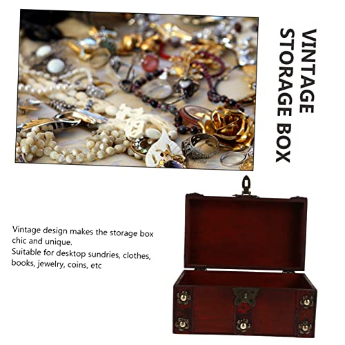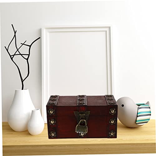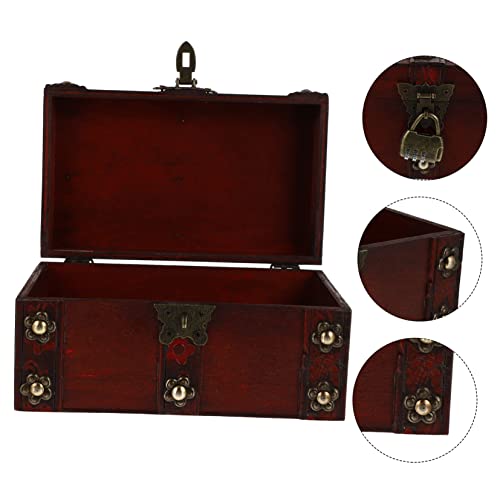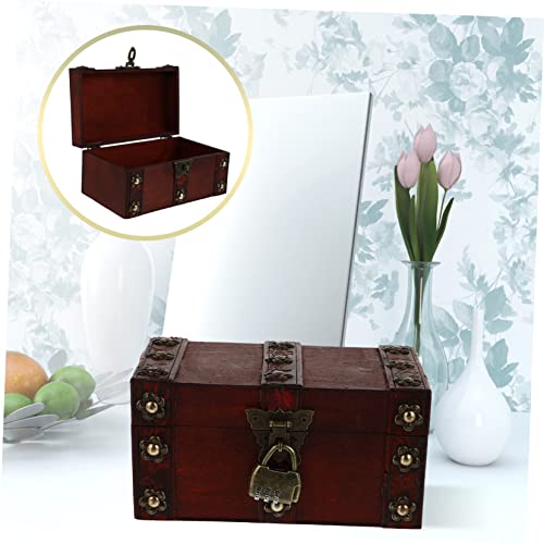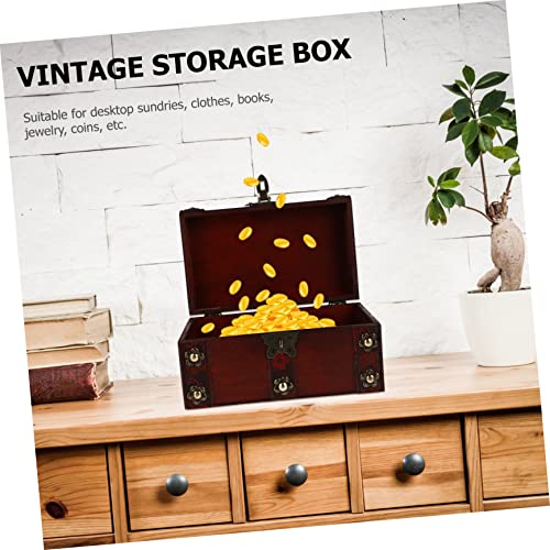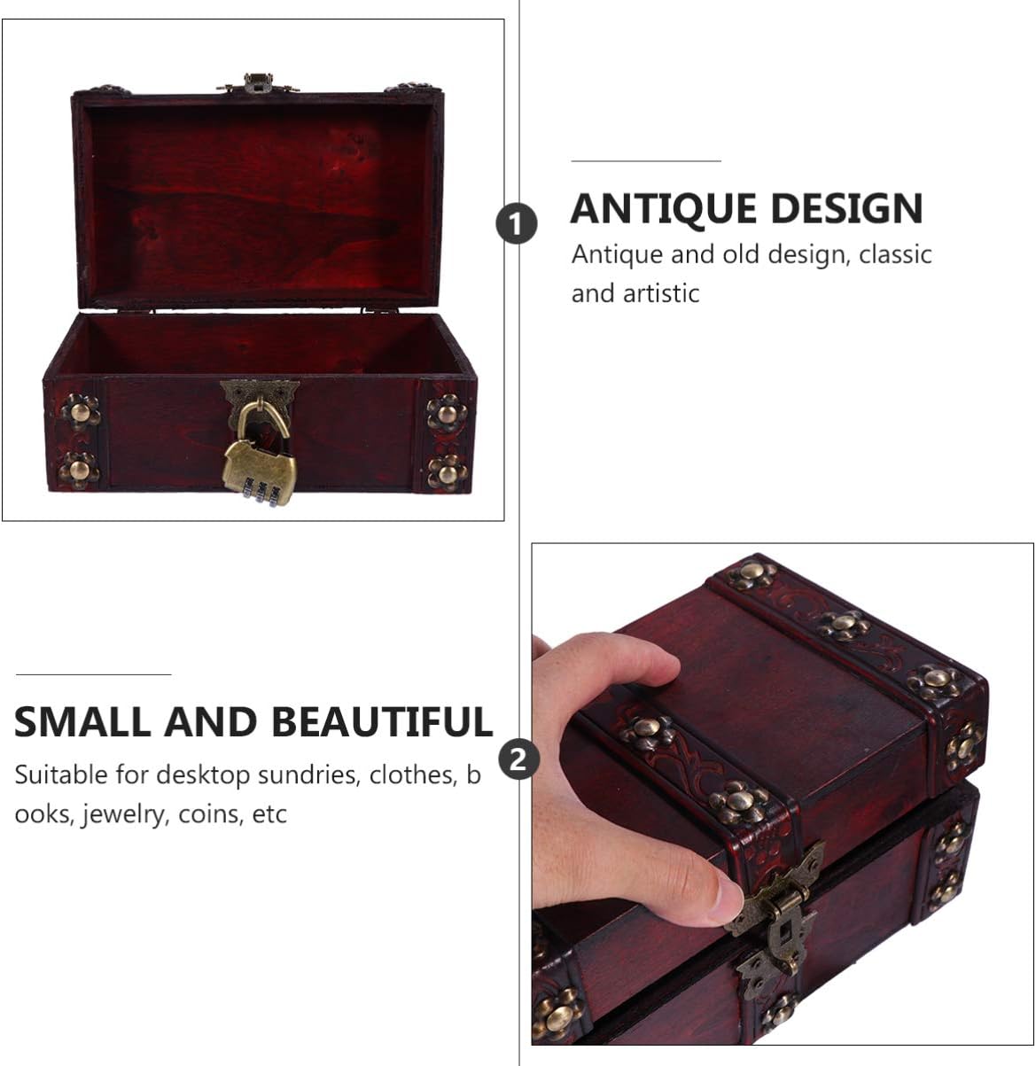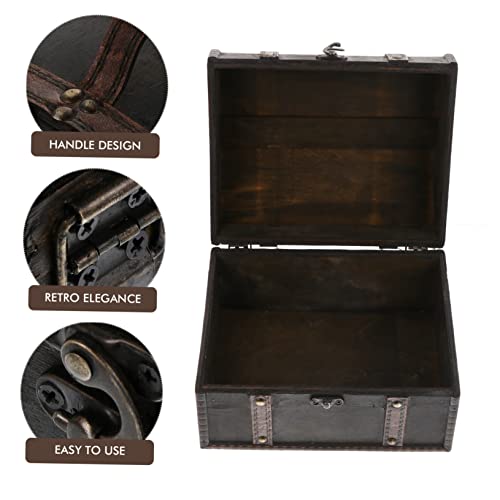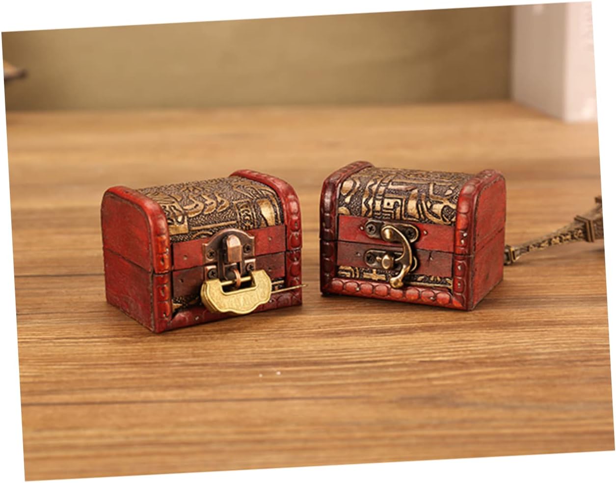 Amosfun Wooden Treasure Chest Boxes Mini Vintage Trunk with Brass Lock For Jewelry Keepsakes Coin Collection Or Home Decoration