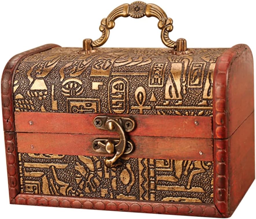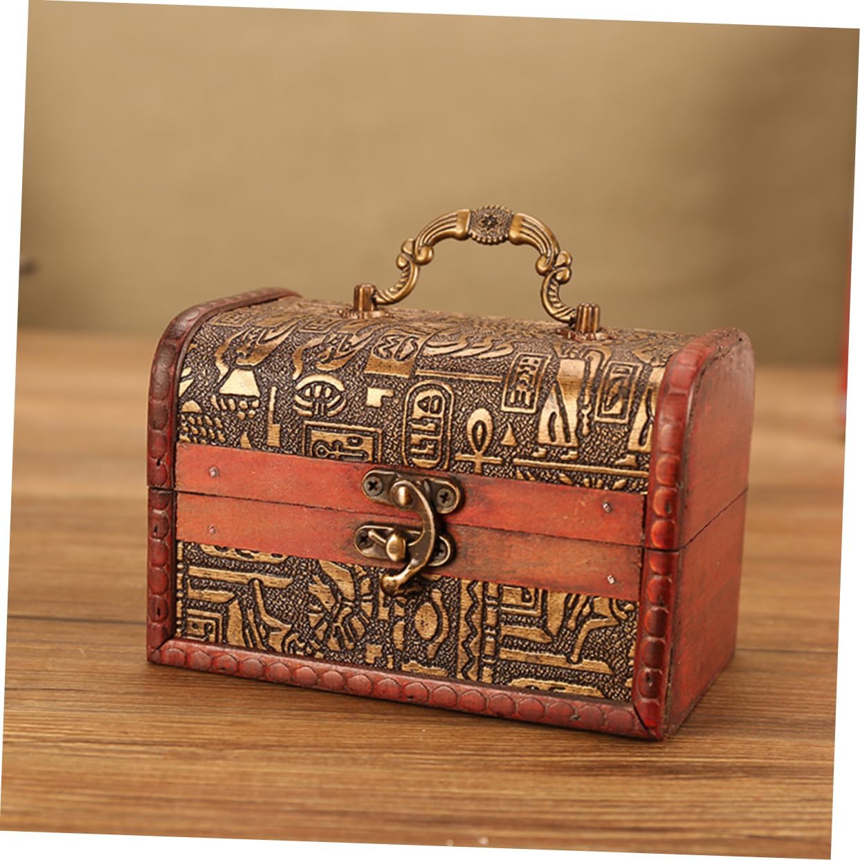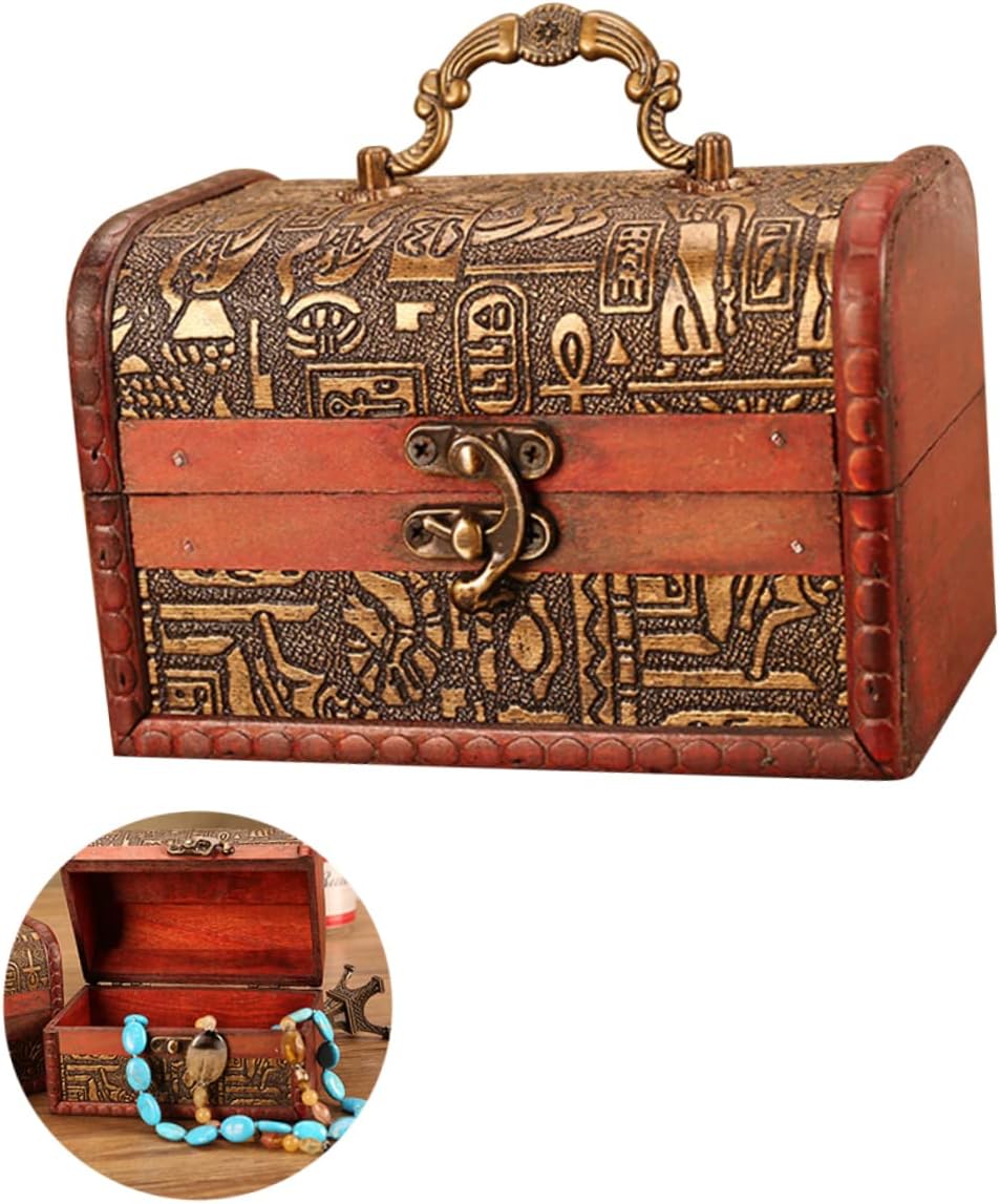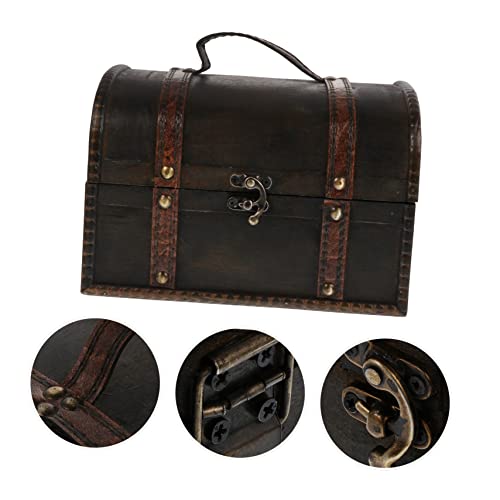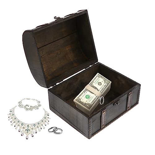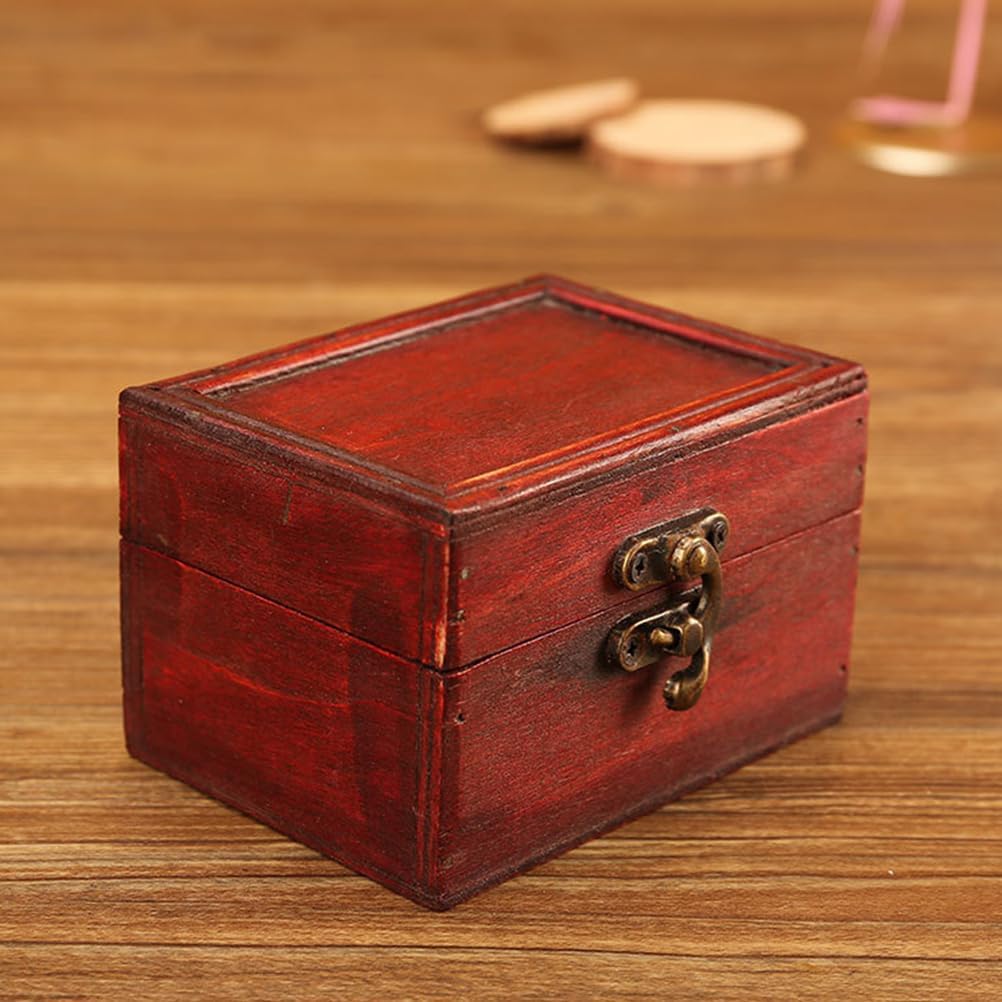 Amosfun Wooden Treasure Chest Boxes Mini Vintage Trunk with Brass Lock For Jewelry Keepsakes Coin Collection Or Home Decoration