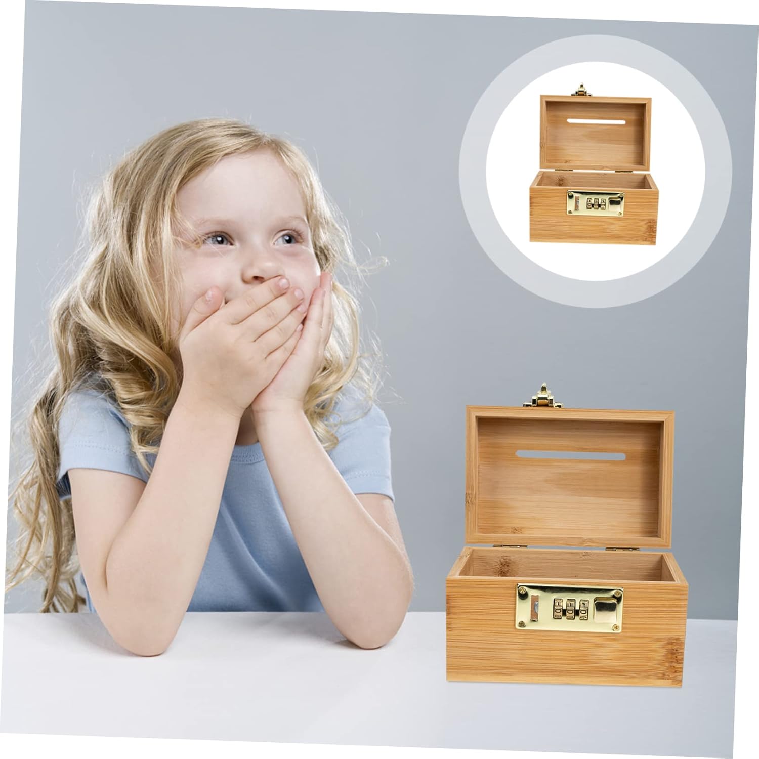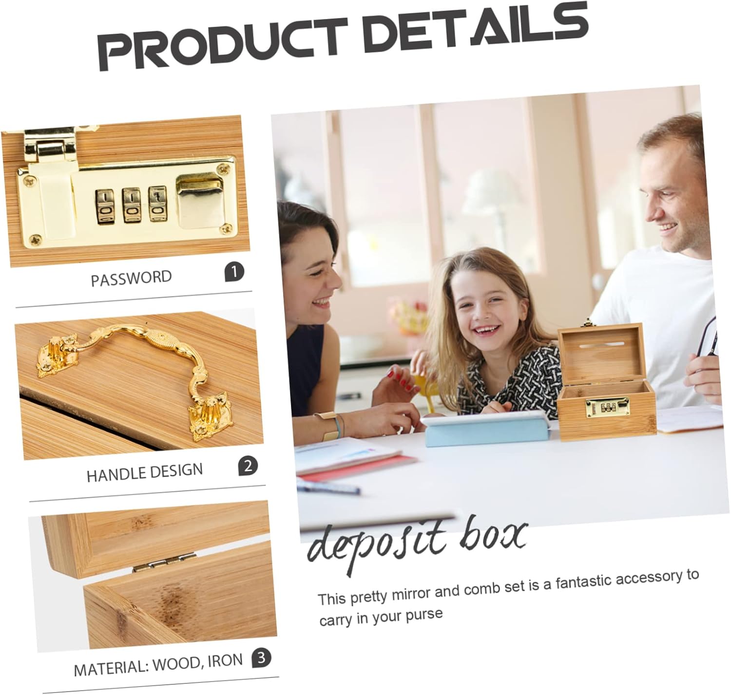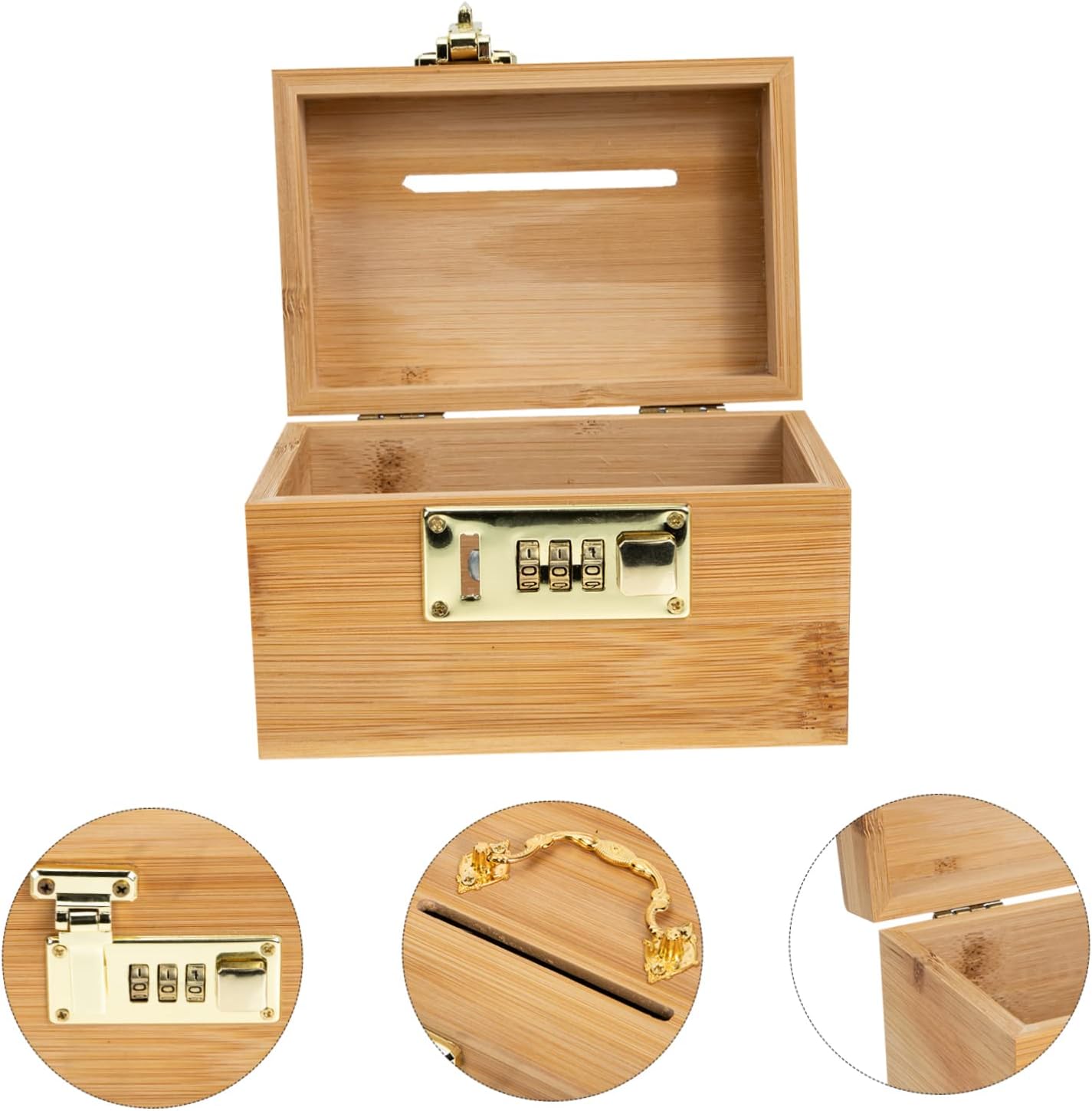 Garneck 4pcs Box money box with lock wooden storage chest trunk piggy bank square Wooden Piggy Banks with Lock coin change container cash rustic wooden box vacation password wrought iron