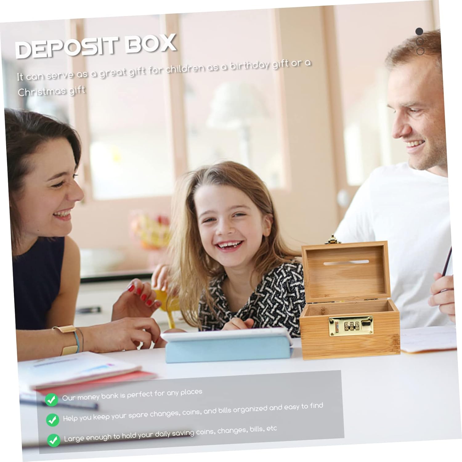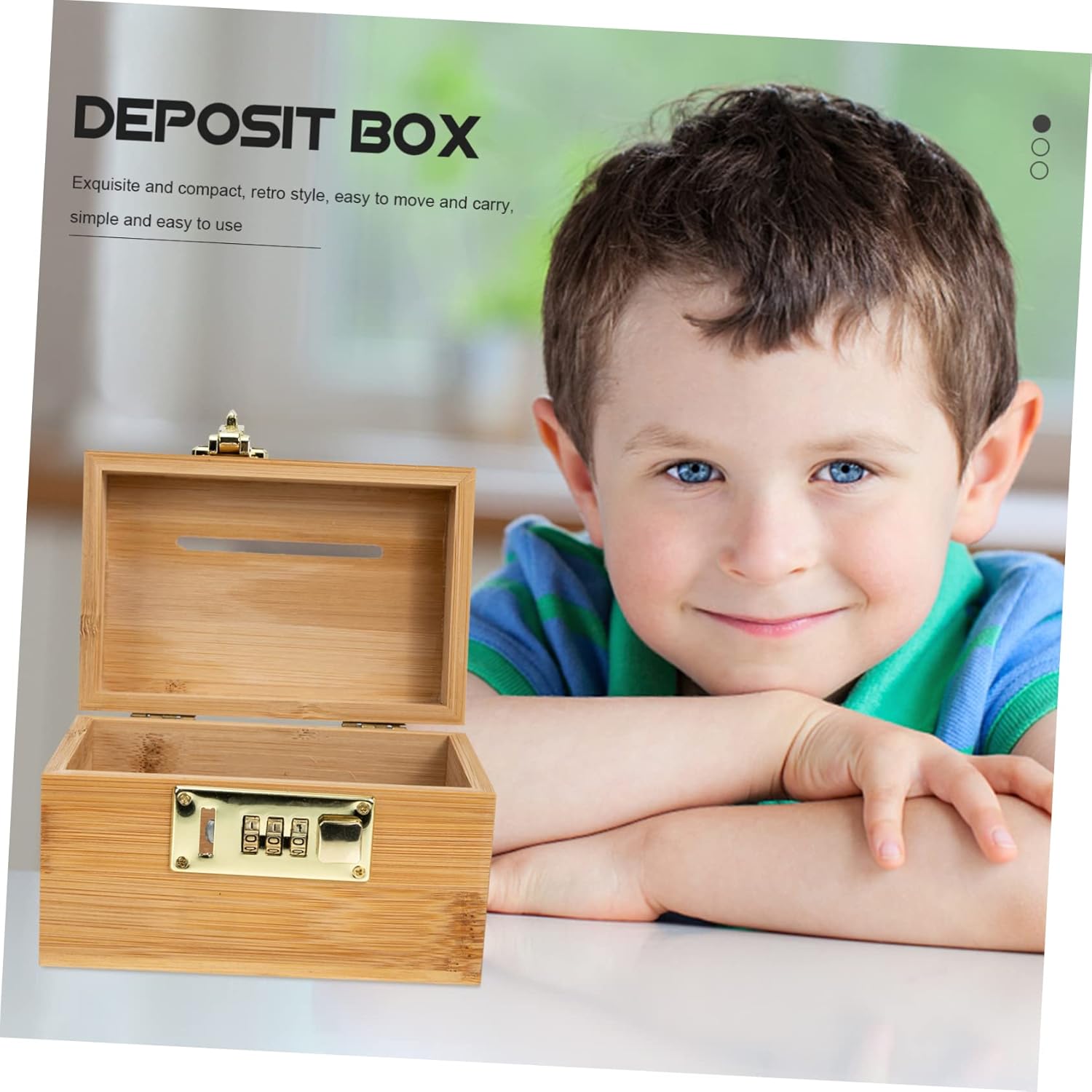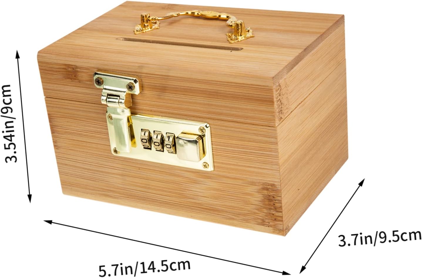 Garneck 4pcs Box money box with lock wooden storage chest trunk piggy bank square Wooden Piggy Banks with Lock coin change container cash rustic wooden box vacation password wrought iron