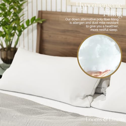 Pillows Queen Size Set of 2 20x30 Pillow Insert USA Made Pillows Sleeping Pillow Insert by Looms and Linens for Queen Pillows Set of 2 Bedroom with hypoallergenic cushion filler