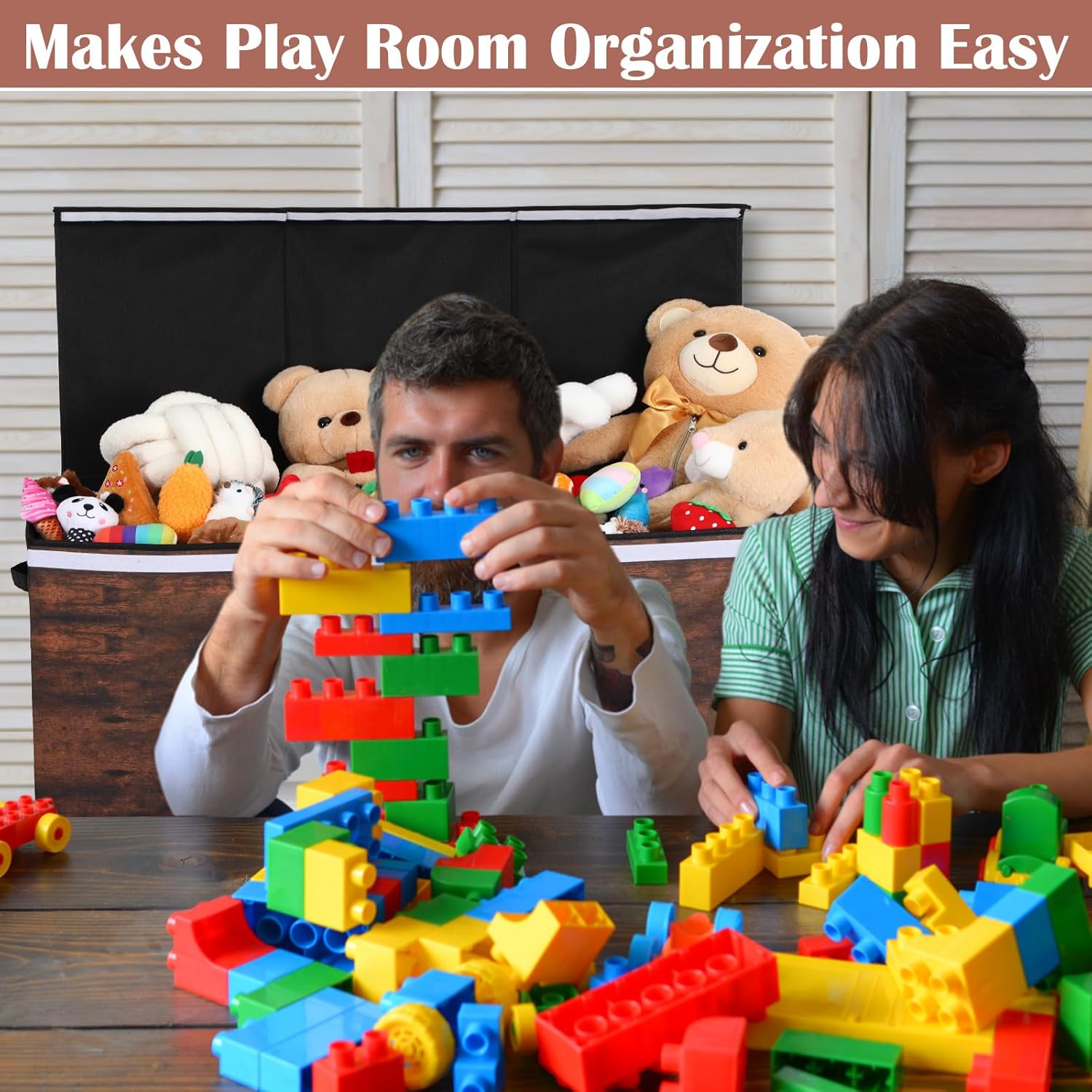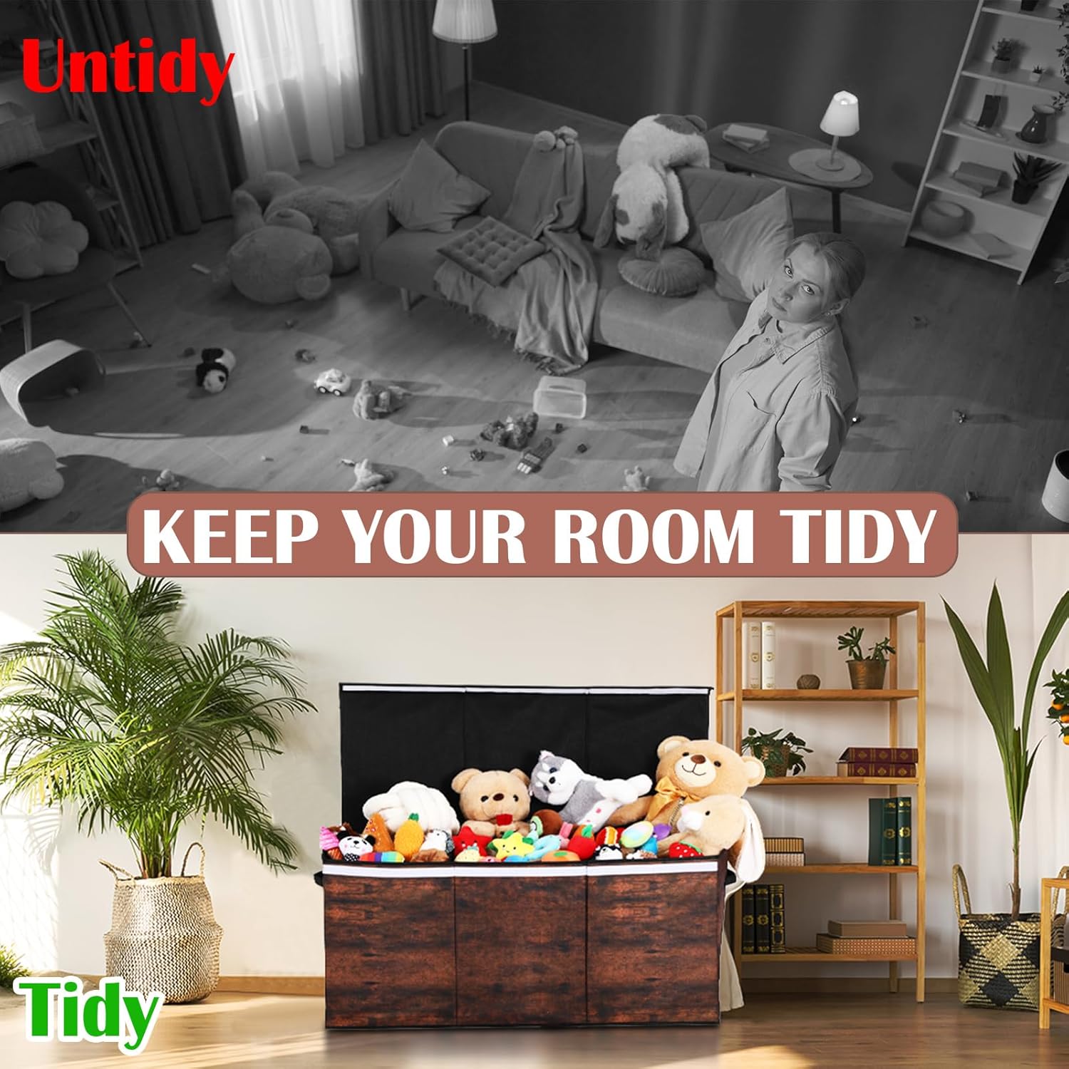Imitation Wooden Storage Chest Rustic Wood Print Storage Benches with Lid and Handles Toy Box 39.4 x 15.7 x 19.2 Inch Non Woven Toy Storage Organizer Easy Assembly for Playroom Bedroom