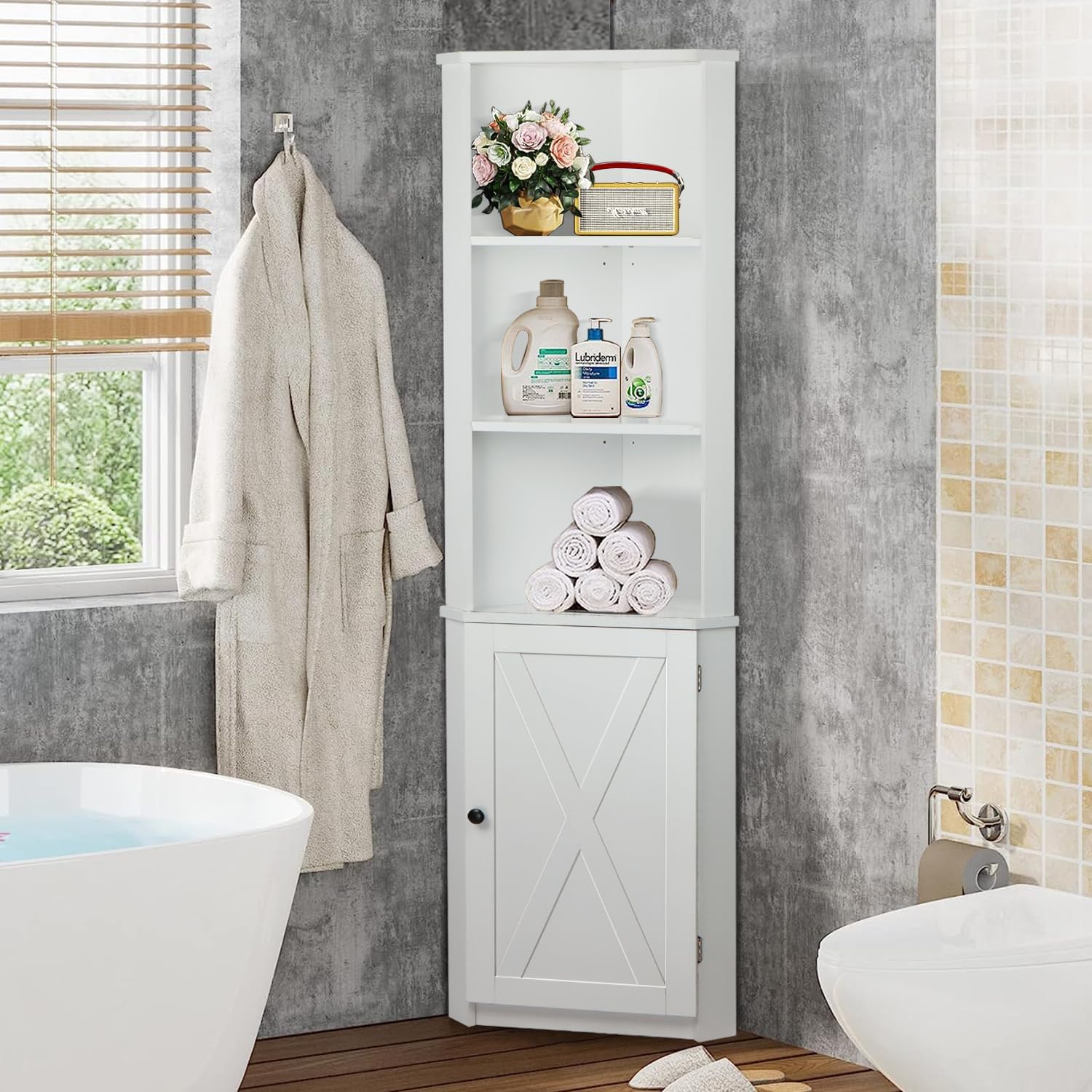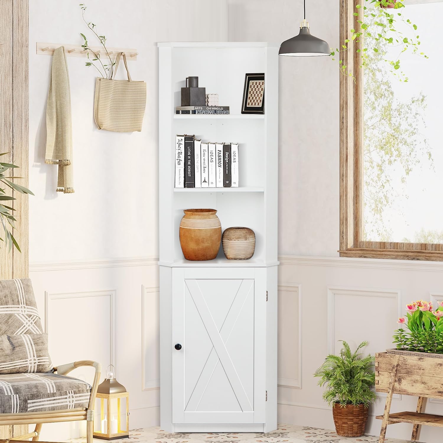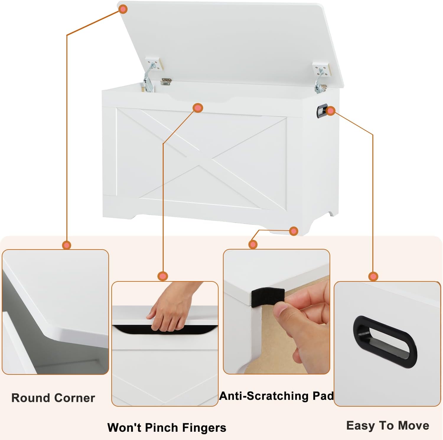 Storage Chest and Corner Cabinet Bundles, Large Toy Chest, Storage Trunk, Tall Storage Cabinet with LED Lights, Tall Corner Bookshelf for Living Room, White