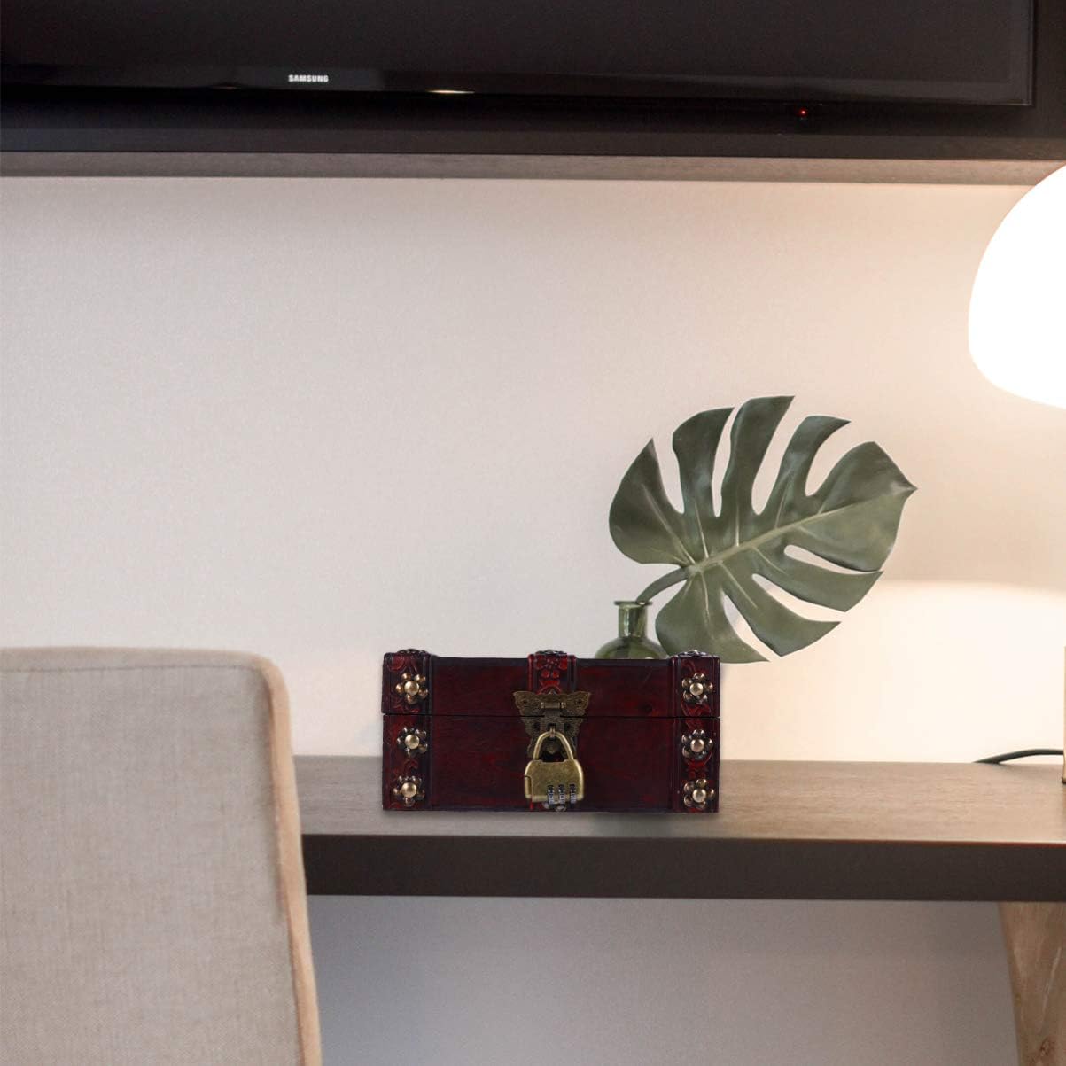 KESYOO Vintage Wooden Treasure Box Storage Trunks Storage Chest with Metal Lock Jewery Case Gift Box for Dormitory Home Jewery Cosmetic