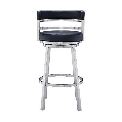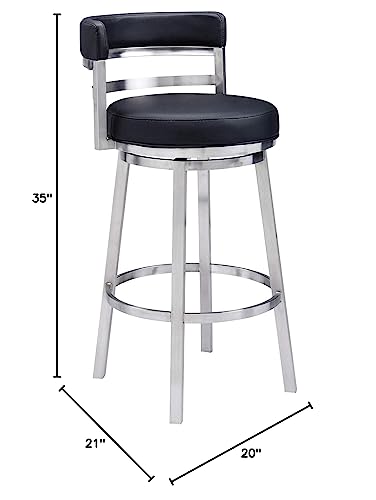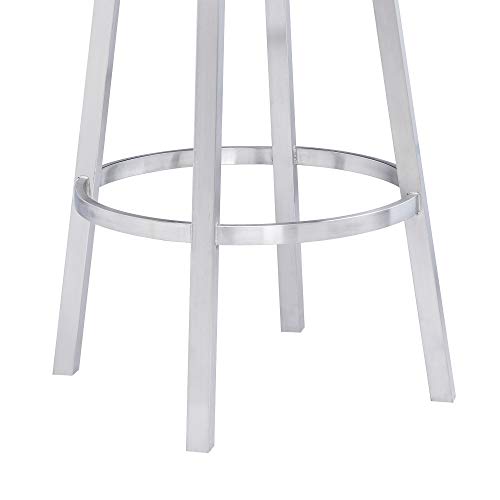 Armen Living Madrid 26" Counter Height Swivel Modern Gray Faux Leather and Brushed Stainless Steel Bar Stool for Kitchen Island Counter