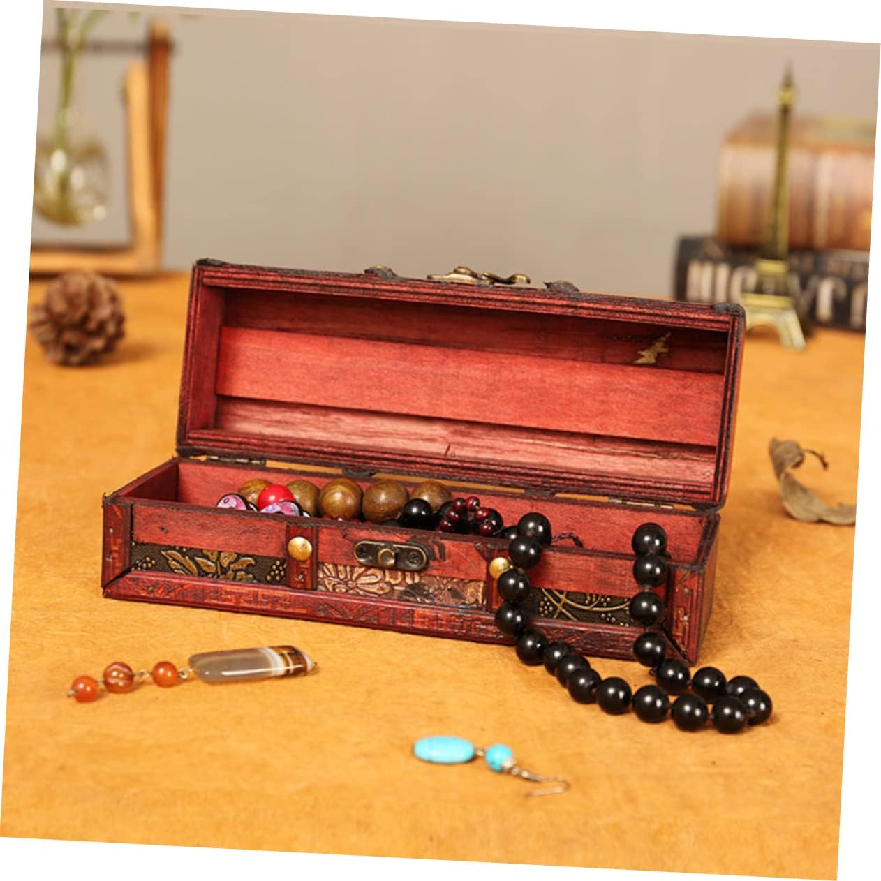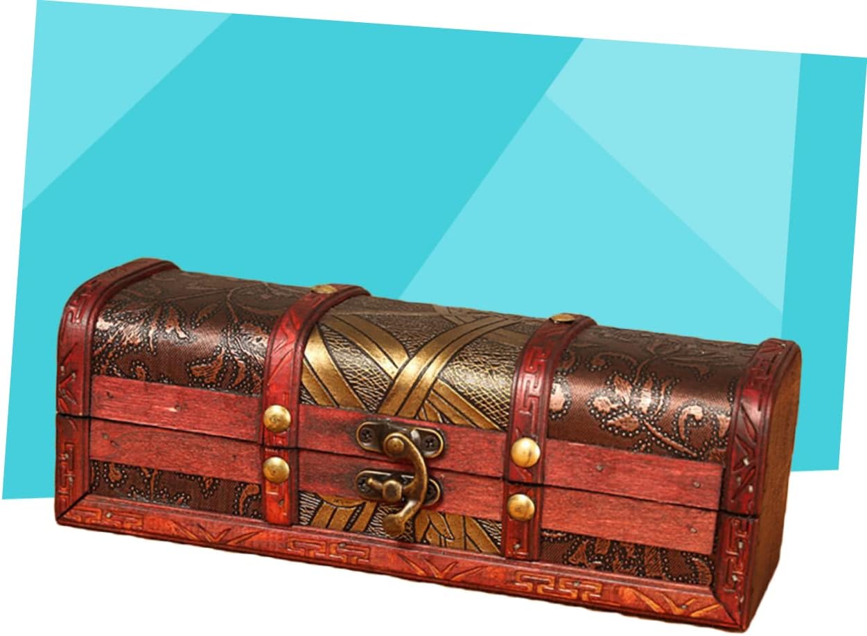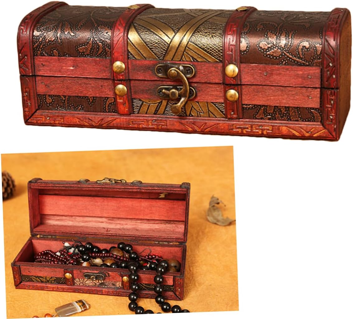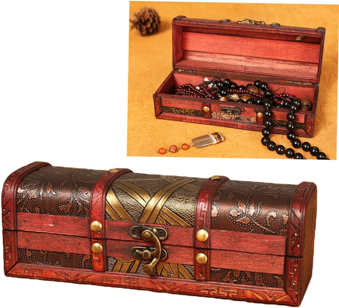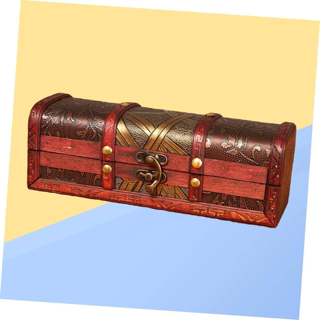 ABOOFAN Box Box Wooden Retro Treasure Chest Vanity Jewelry Case Wooden Storage Chest Storage Chests and Trunks Pirate Jewelry Antique Jewlery Trinket Case Girl Handheld Trinkets