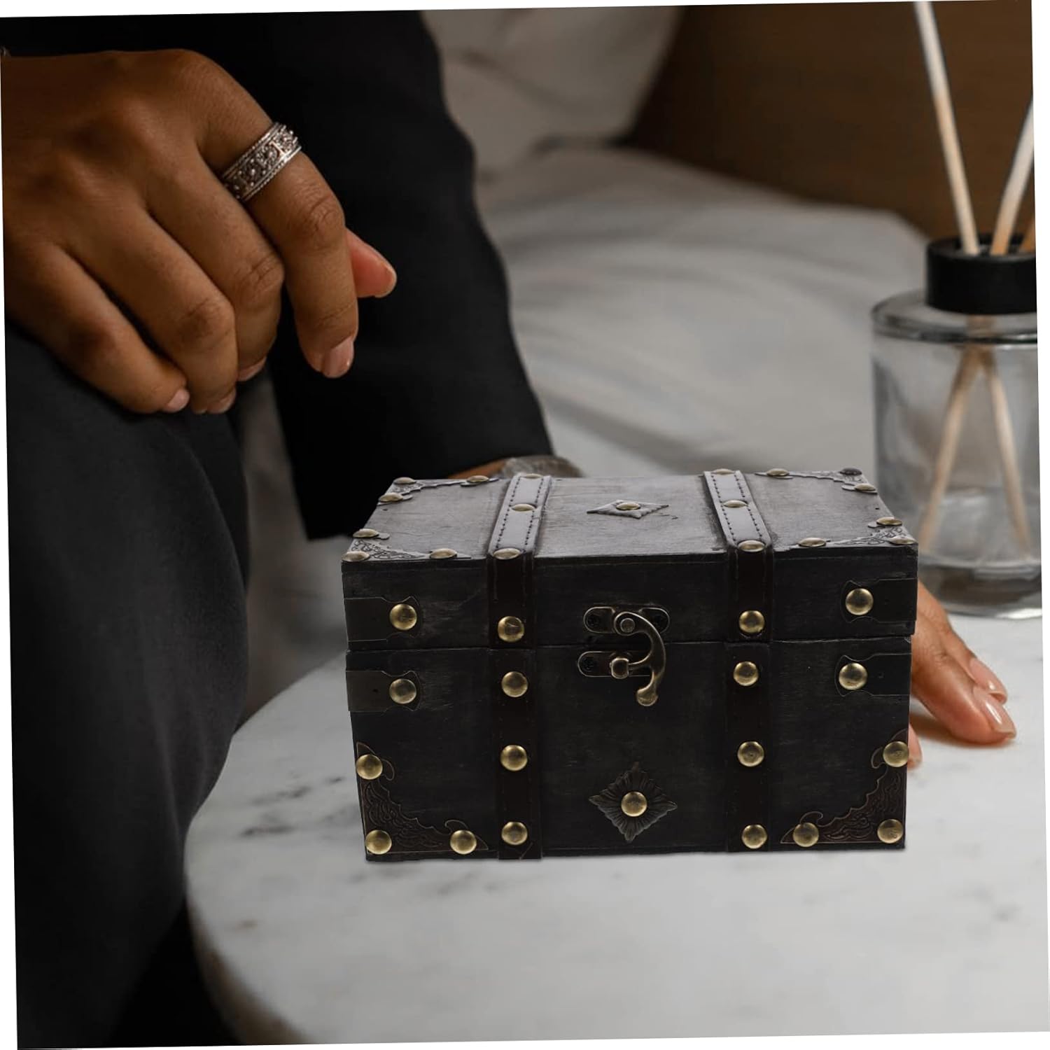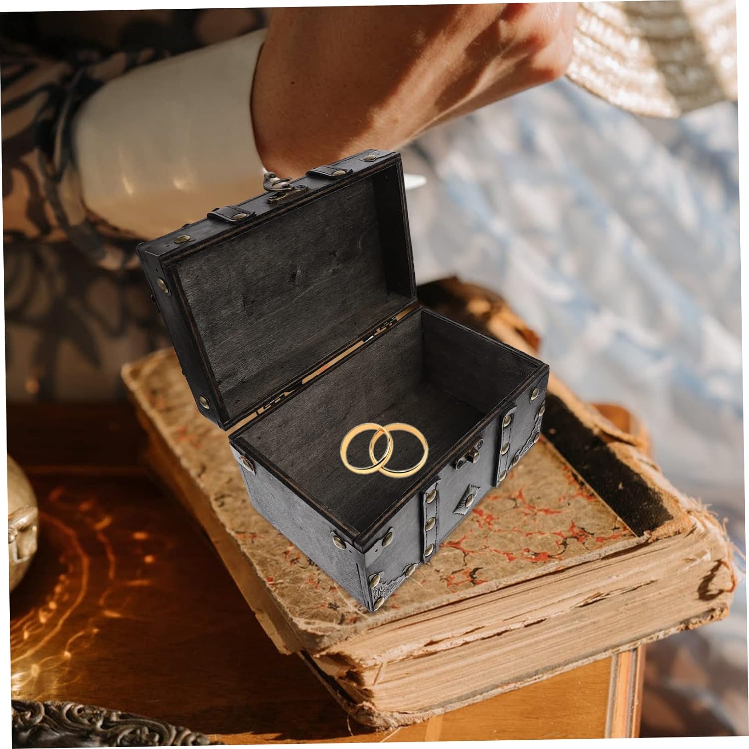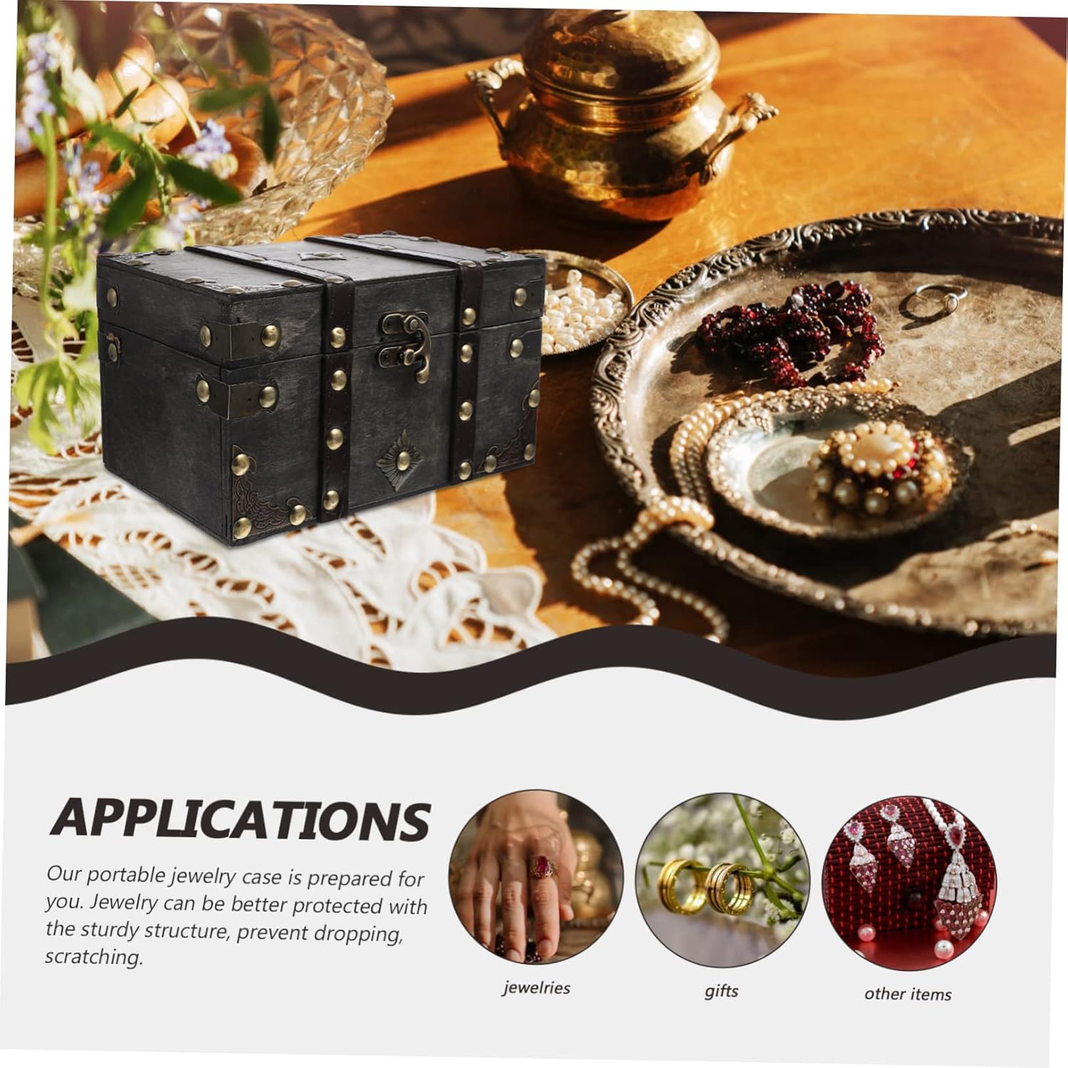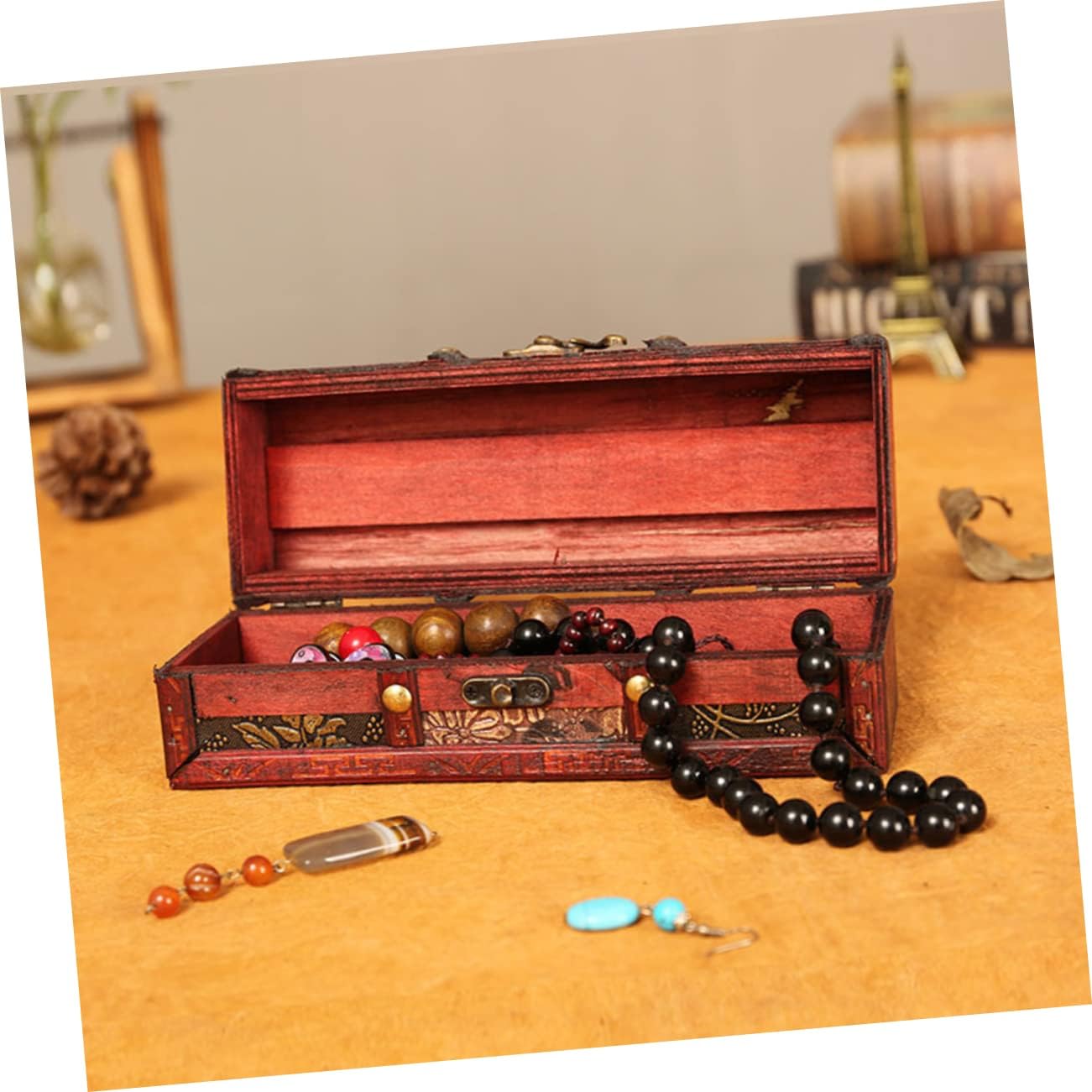 ABOOFAN Box Box Wooden Retro Treasure Chest Vanity Jewelry Case Wooden Storage Chest Storage Chests and Trunks Pirate Jewelry Antique Jewlery Trinket Case Girl Handheld Trinkets