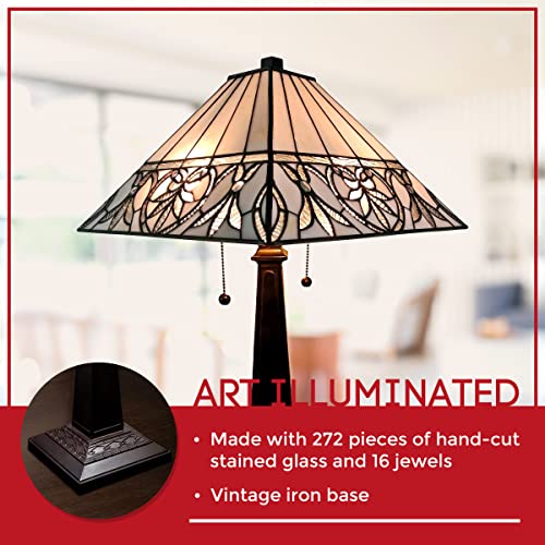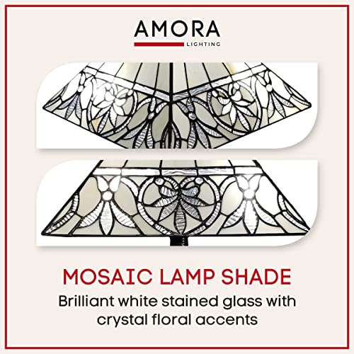 Amora Vintage Tiffany Table Lamp - Geometric Floral Table Night Light - White Glass Nightstand Lamp - 22” Tall Stained Glass Lamp