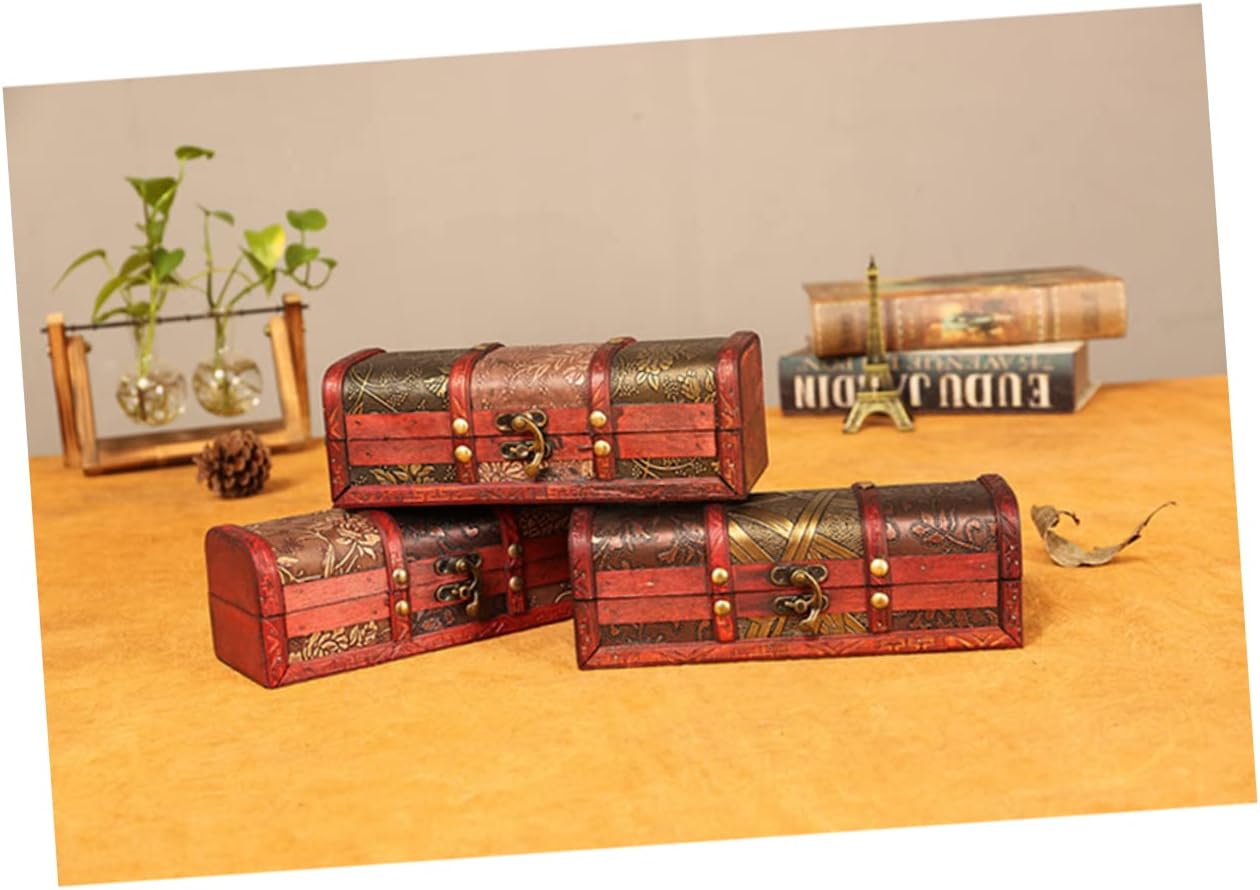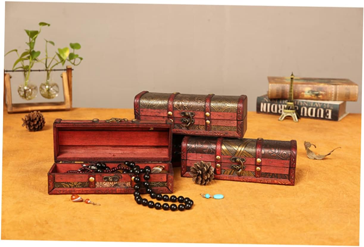 DECHOUS 3 Pcs Money Saving Bank Kids Storage Cubes Decorative Storage Trunk Watch Storage Case Wood Treasure Containers 2020 New Year Kid Piggy Bank Child Hair Stick Pirate Wooden