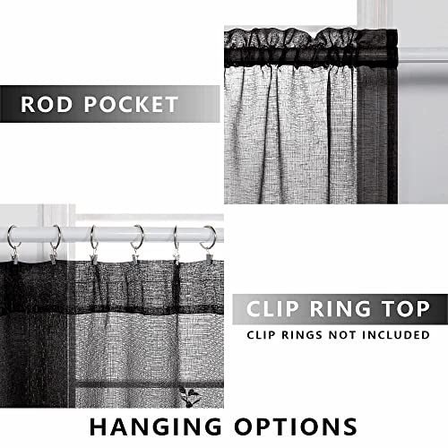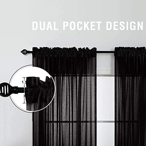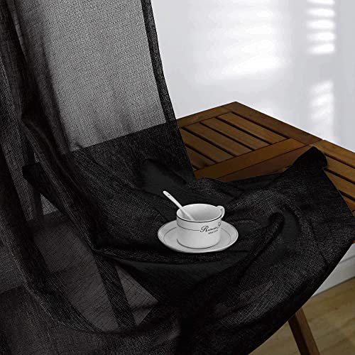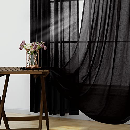 KOUFALL Dark Grey Sheer Curtains 84 Inches Long,Linen Look Rod Pocket Window Curtains for Living Room Bedroom,2 Panels Set,Charcoal Gray