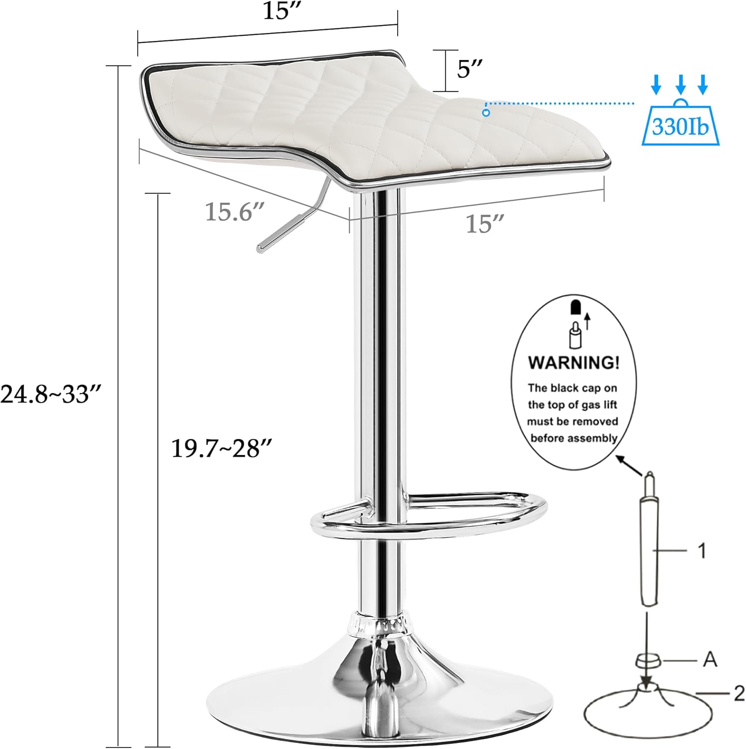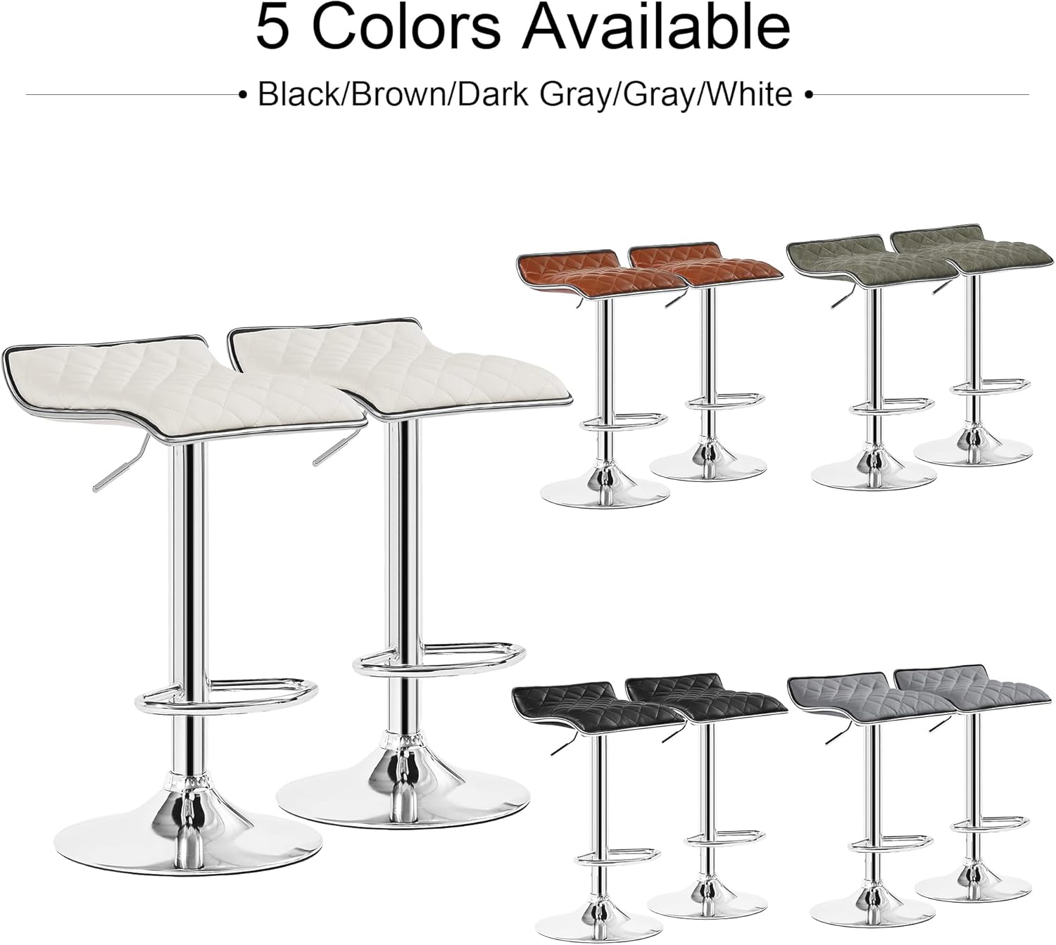 VECELO Adjustable Bar Stools, Bar Height Stools for Kitchen Counter, Bar Stools Set of 2, White