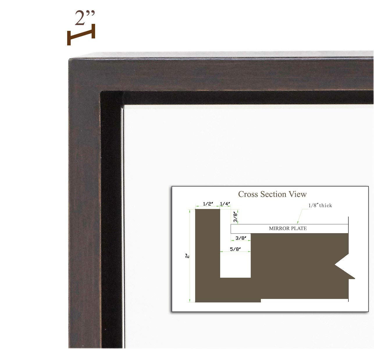 Hamilton Hills 16x24 inch Wenge Framed Mirror | Small Rectangular Bathroom Mirrors for Wall | Floating Glass Panel Vanity with Border | Wall-Mounted Mirror for Decor | Hangs Horizontal or Vertical