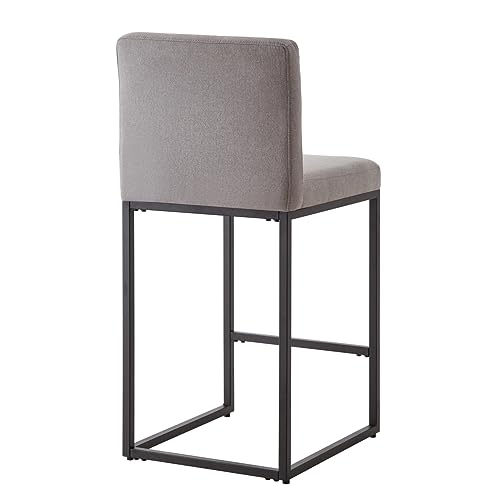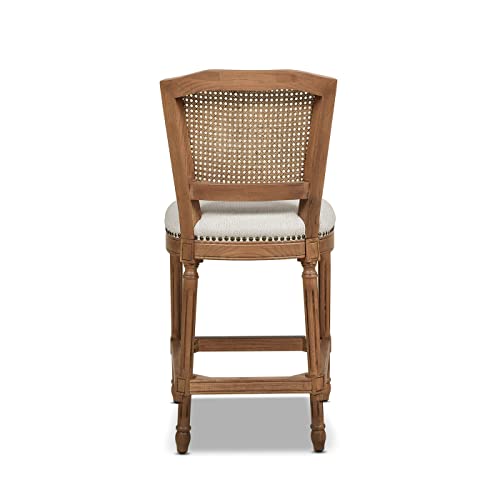 Jennifer Taylor Home Triomphe Rattan Wicker High Back Armless Counter Bar Stool, Dark Heathered Grey Linen