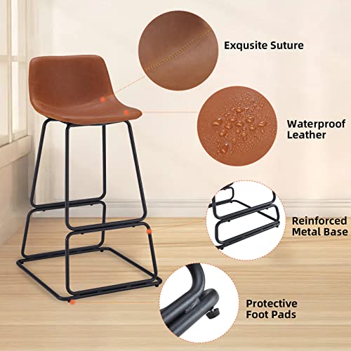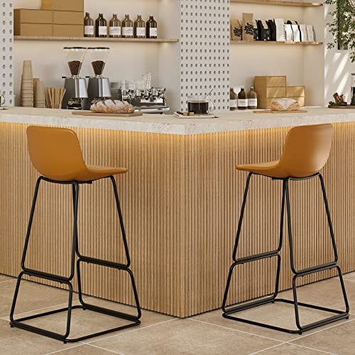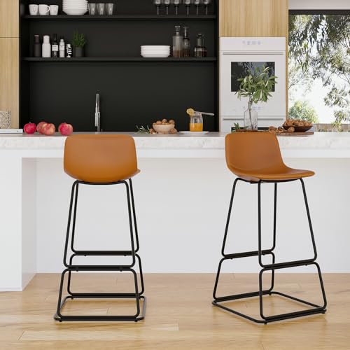 Soohow Bar stools Set of 2, Counter Height Bar Stools, Faux Leather Dining Room Chairs with Soft Backrest & Metal Legs, Easy to Assemble