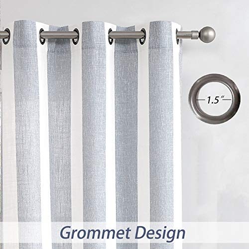 Central Park Gray White Stripe Farmhouse Curtains Semi-Sheer Rayon Blend Heavy Linen Texture Window Curtain Panel 6 Grommets Treatment for Living Room/Bedroom, Set of 2, 44" x 84" Each