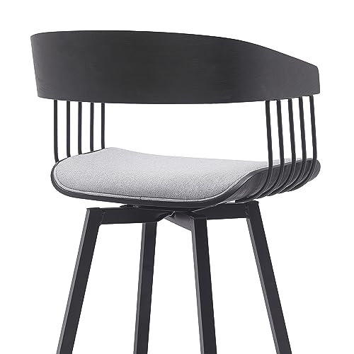 Armen Living Athena 31" Seat Height Mid Century Modern Swivel Walnut Wood Bar Stool for Kitchen Island Counter in Cream Faux Leather with Black Metal
