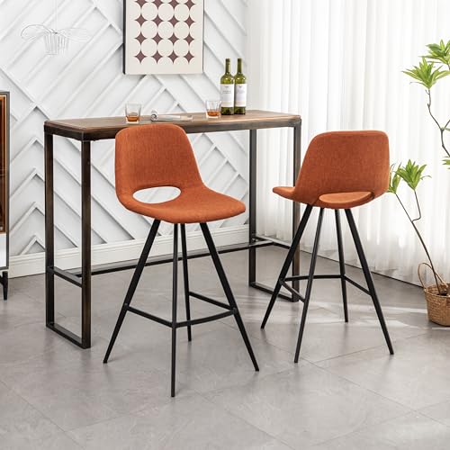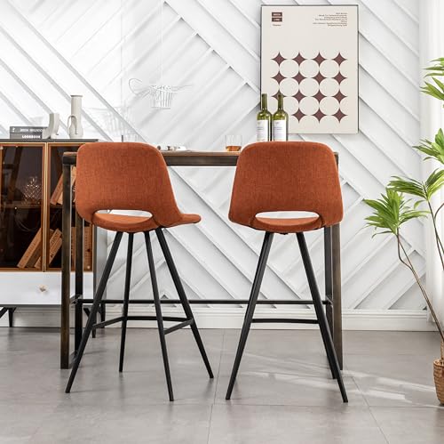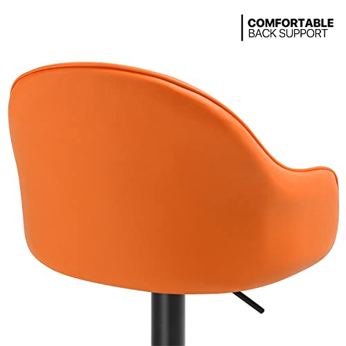 MoNiBloom Modern Shell Back Bar Stools Set of 2 PU Leather Counter Height Adjustable Swivel Barstools with Back and Arms for Pub Kitchen Dining Room Chairs with Footrest, Orange