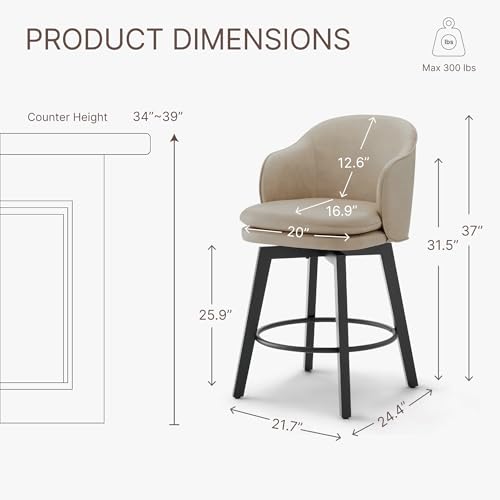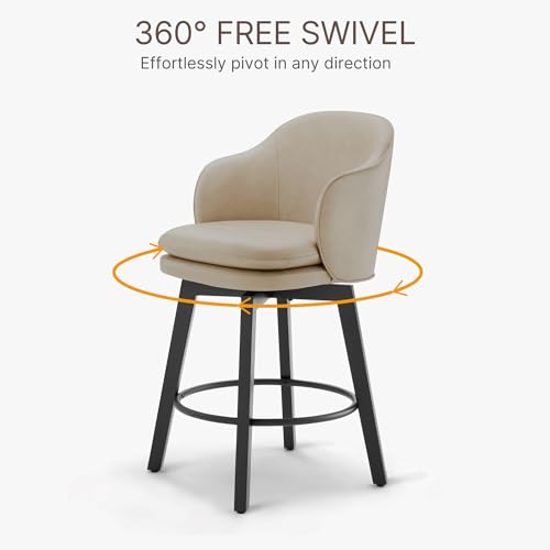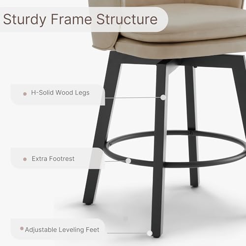 Counter Height Barstools 26 inch Upholstered Swivel Bar Stools with Back for Kitchen Island,Set of 2,Beige PU Leather