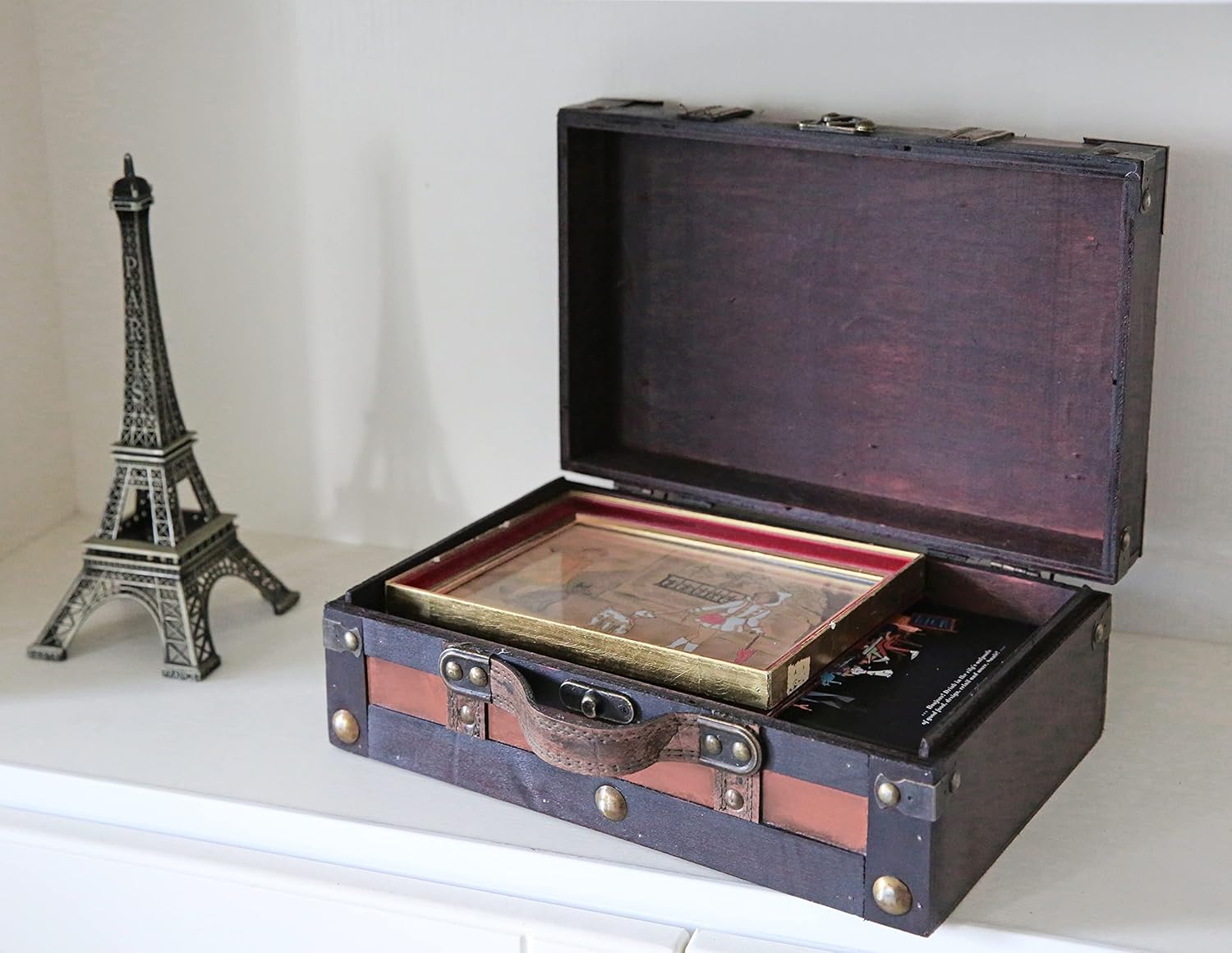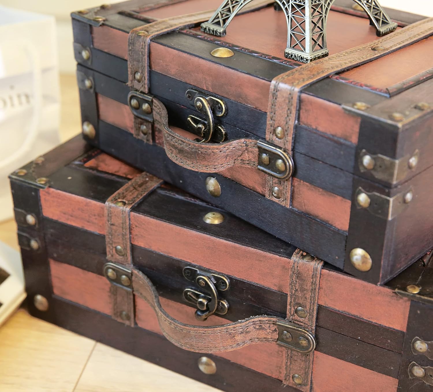 Vintage Wooden Treasure Chest Suitcases - Set of 2: Decorative Storage Trunks with Hinged Lids, Memory Boxes for Keepsakes, Pirate Chest, Wooden Chest & Trunk, Vintage Suitcase Décor (Crawford)