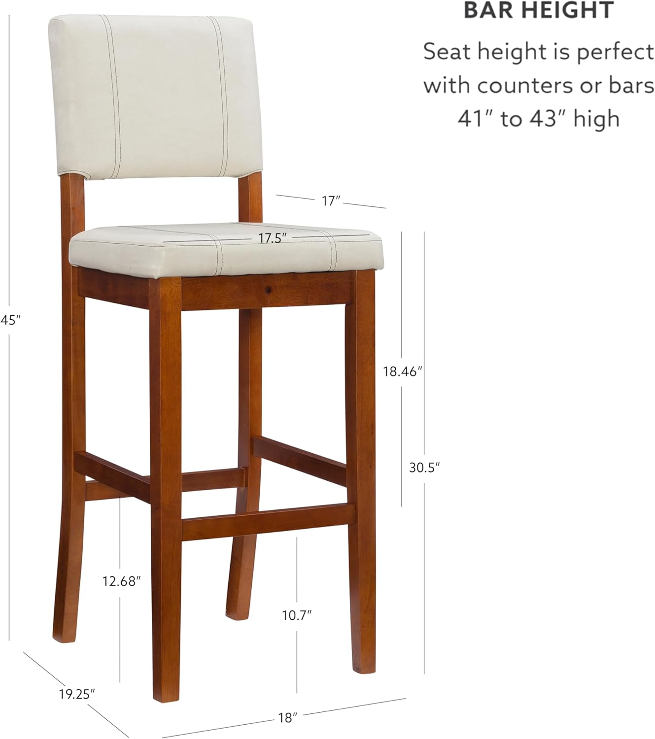 Linon FBA_ Milano Bar Stool, 18"W x 20"D x 45"H, Off-White
