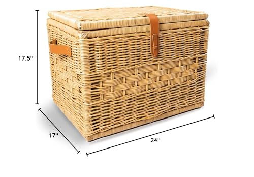 The Basket Lady Deep Wicker Storage Trunk, Large, 24 in L x 17 in W x 17.5 in H, Sandstone