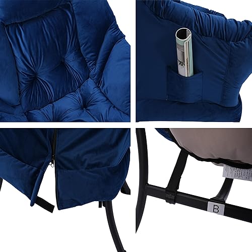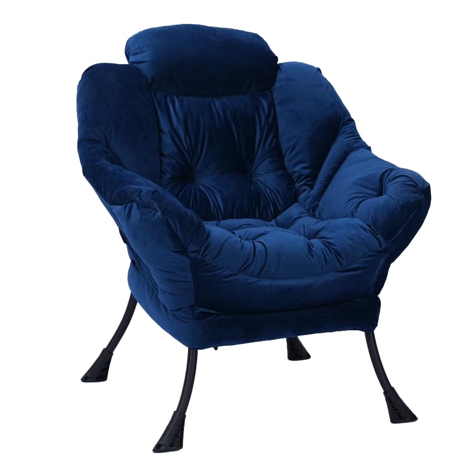Living Room Chairs Modern Cotton Fabric Lazy Chair, Accent Contemporary Lounge Chair, Single Steel Frame Leisure Sofa Chair with Armrests and A Side Pocket (Blue)
