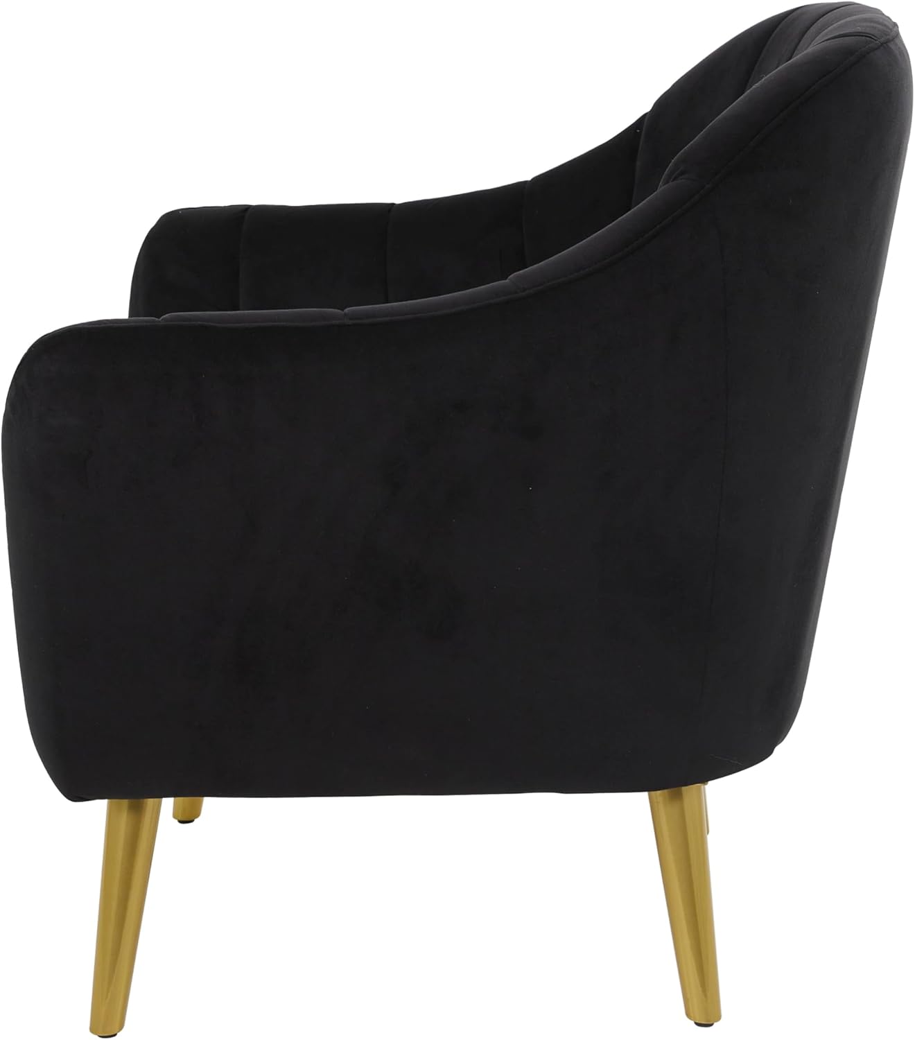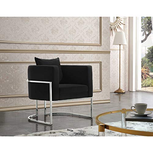 Meridian Furniture Pippa Collection Modern | Contemporary Velvet Upholstered Accent Chair with Chrome Stainless Steel Base, Black, 30" W x 30" D x 29" H
