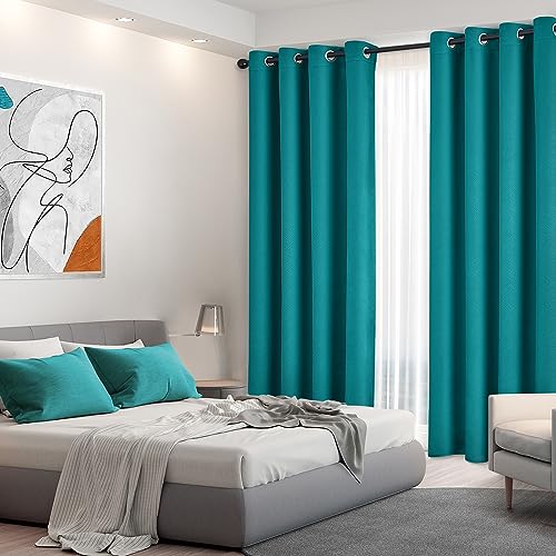 HOMEIDEAS 100% Grey Blackout Curtains 63 Inch Length 2 Panels Set, Gray Room Darkening Curtains for Bedroom, Thermal Insulated Embossed Satin Curtains & Drapes with Black Lining for Living Room