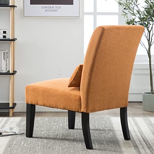 R. Drexell Contemporary Chenille Fabric Armless Accent Chair with Pillow, Orange